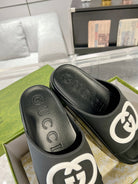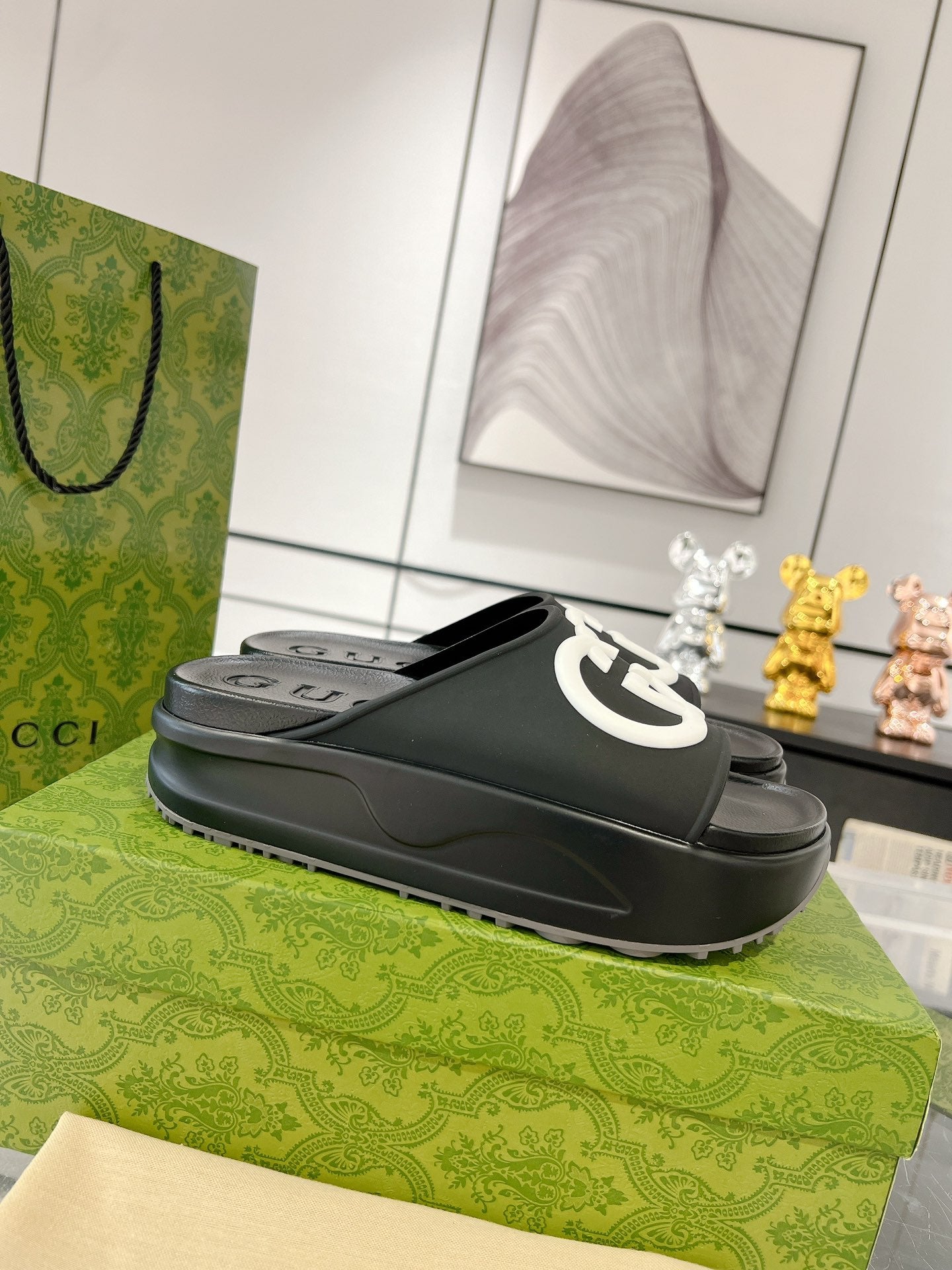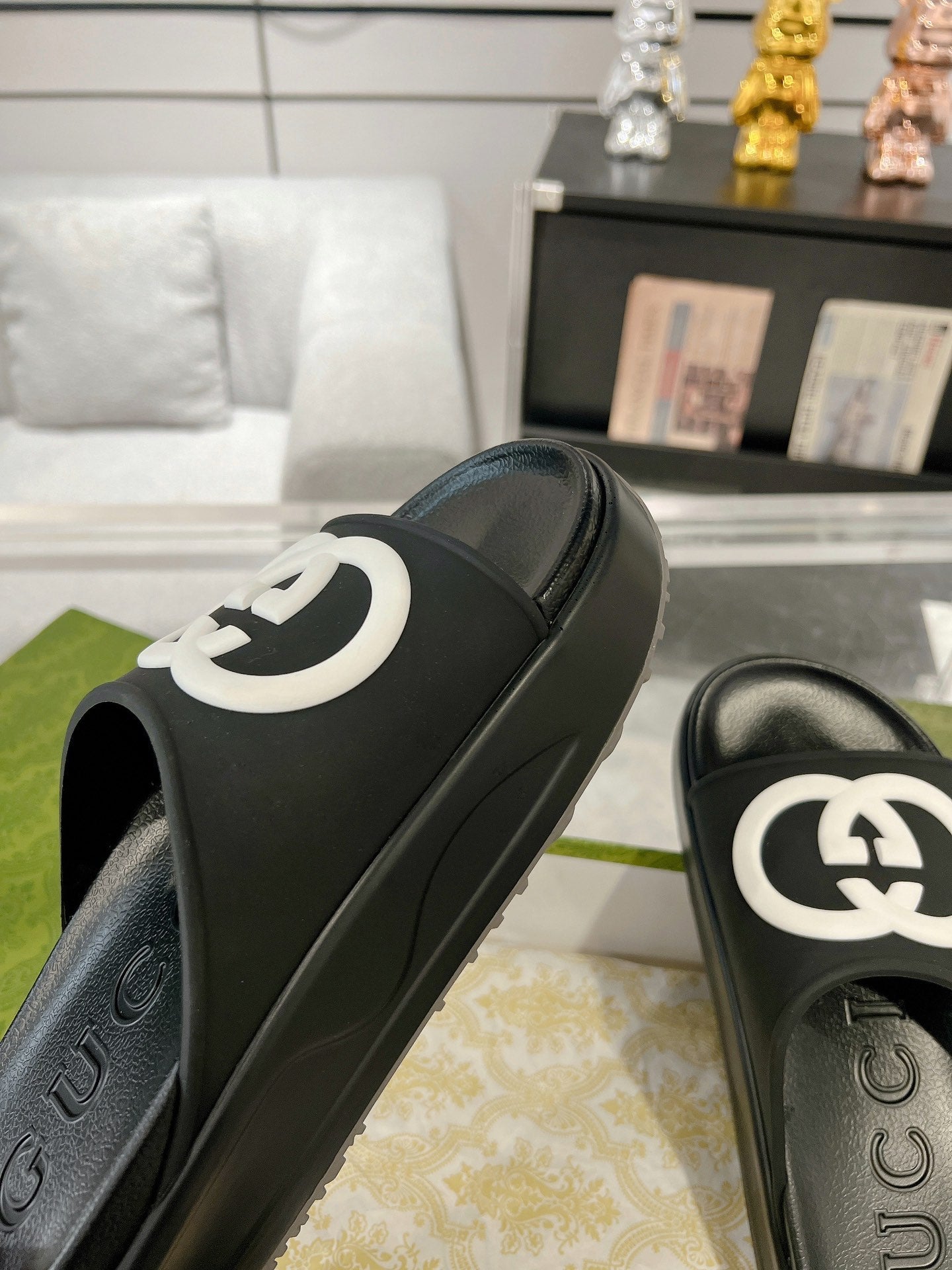 GC 25 Interlocking G 50mm Slide Sandal White Black Cowhide 292399