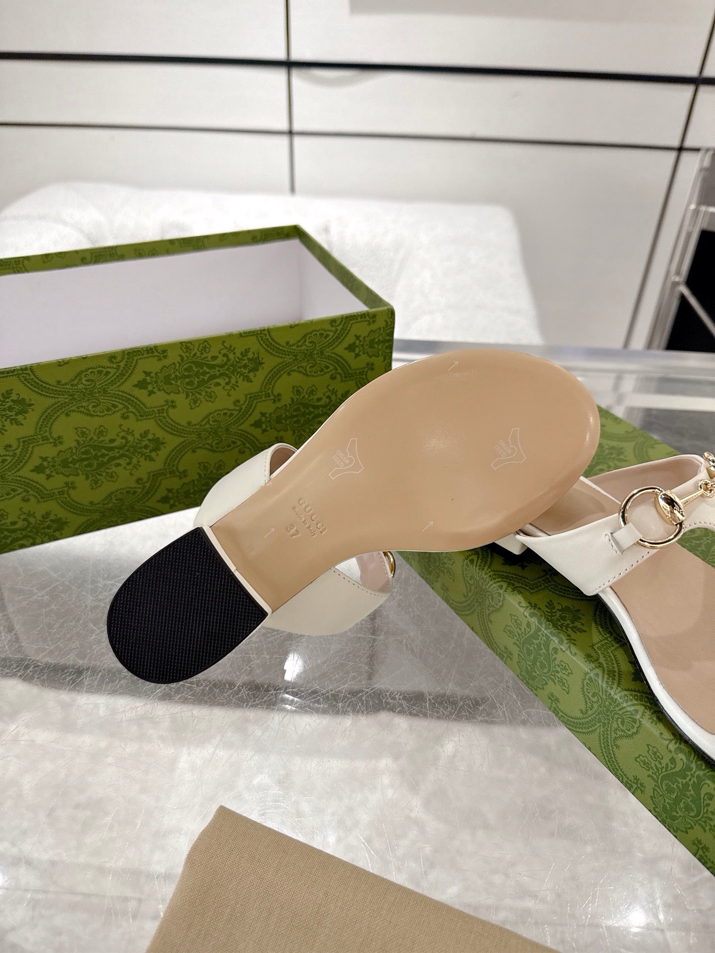 GC Horsebit Thong Sandals Ivory Leather 292476