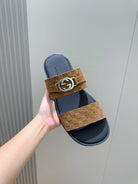 GG Men's Interlocking G Sandals Brown Suede 599982