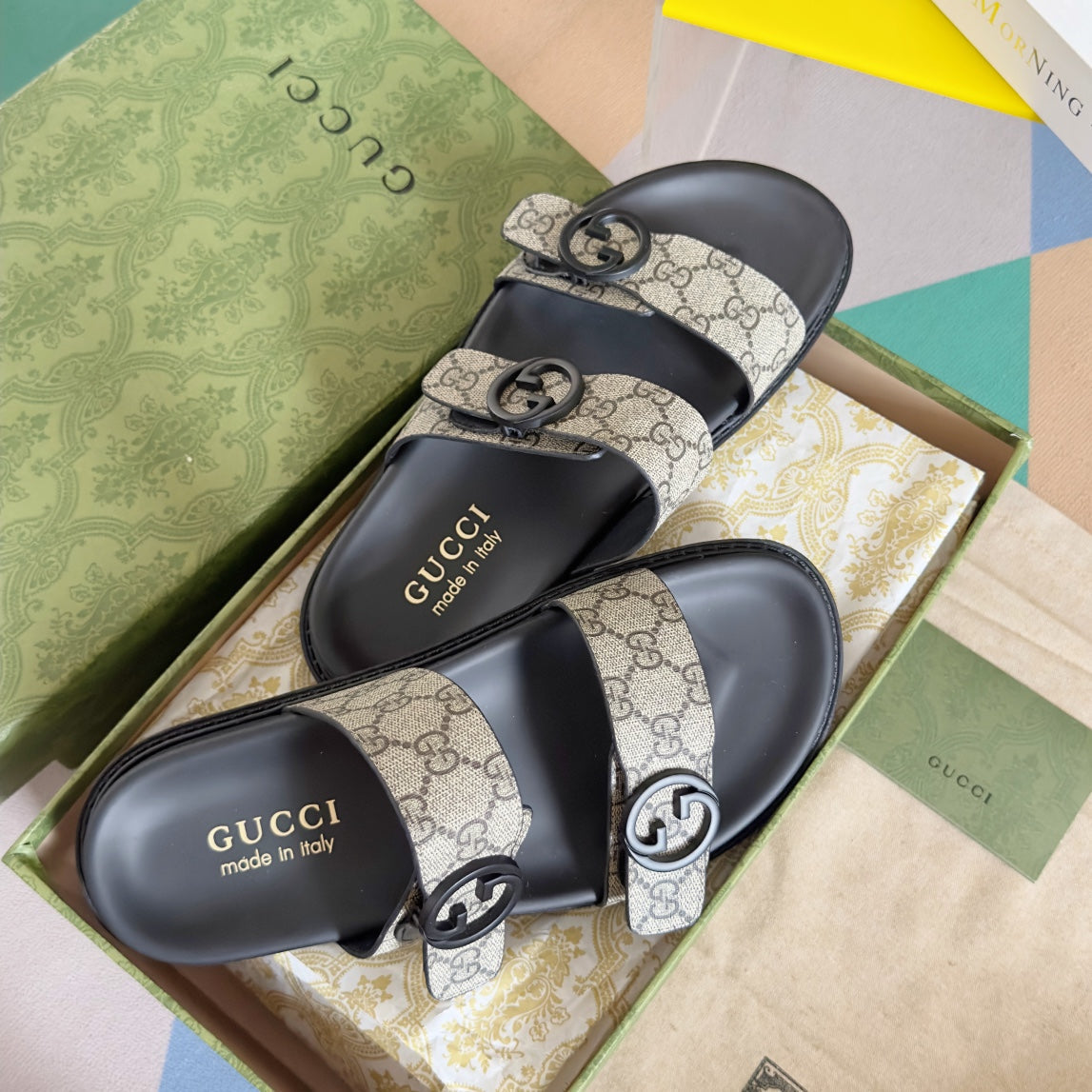 GG Men's Sandals Slide Brown Canvas 558134