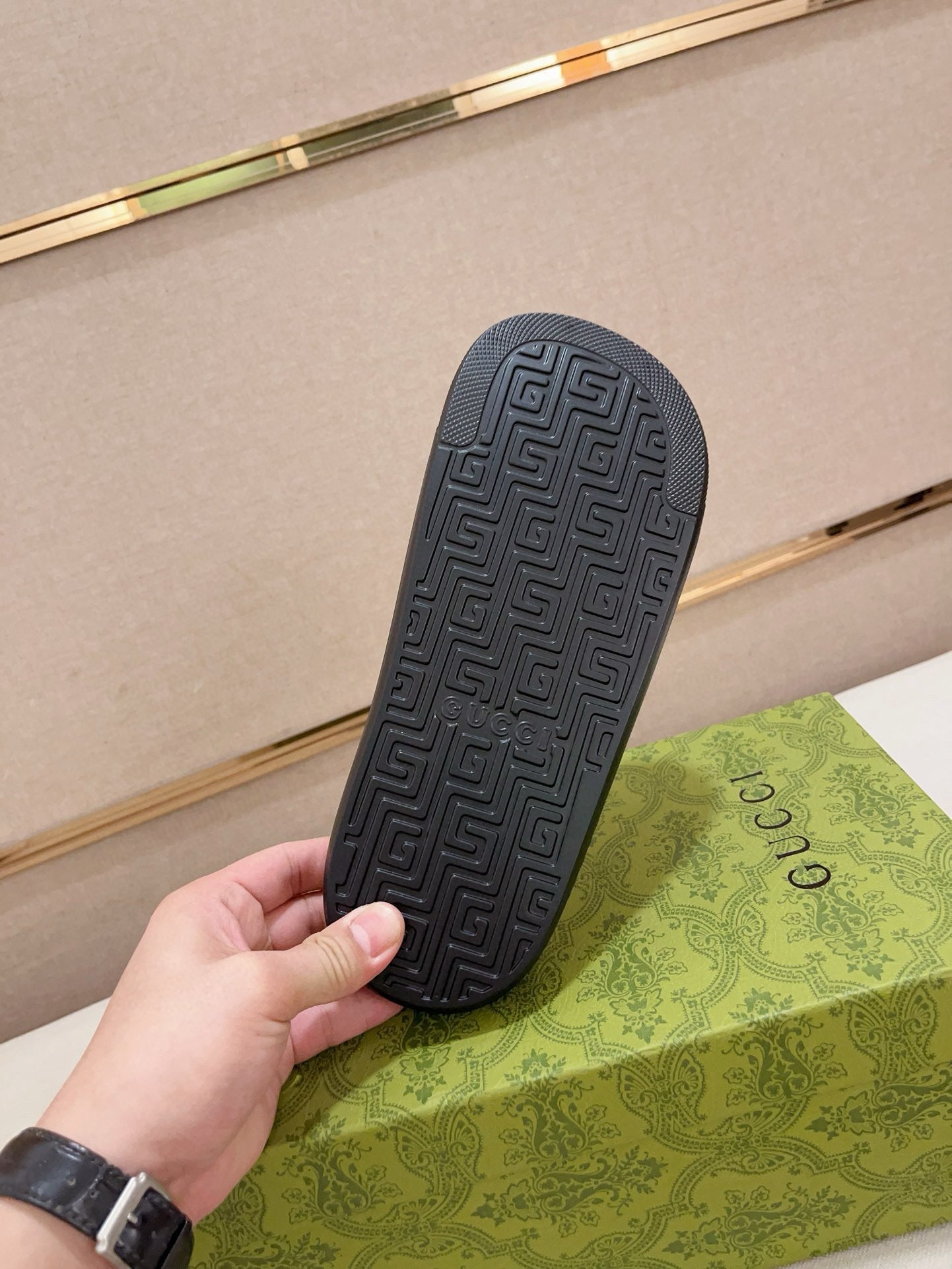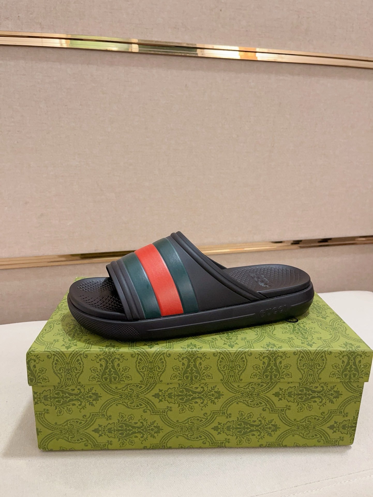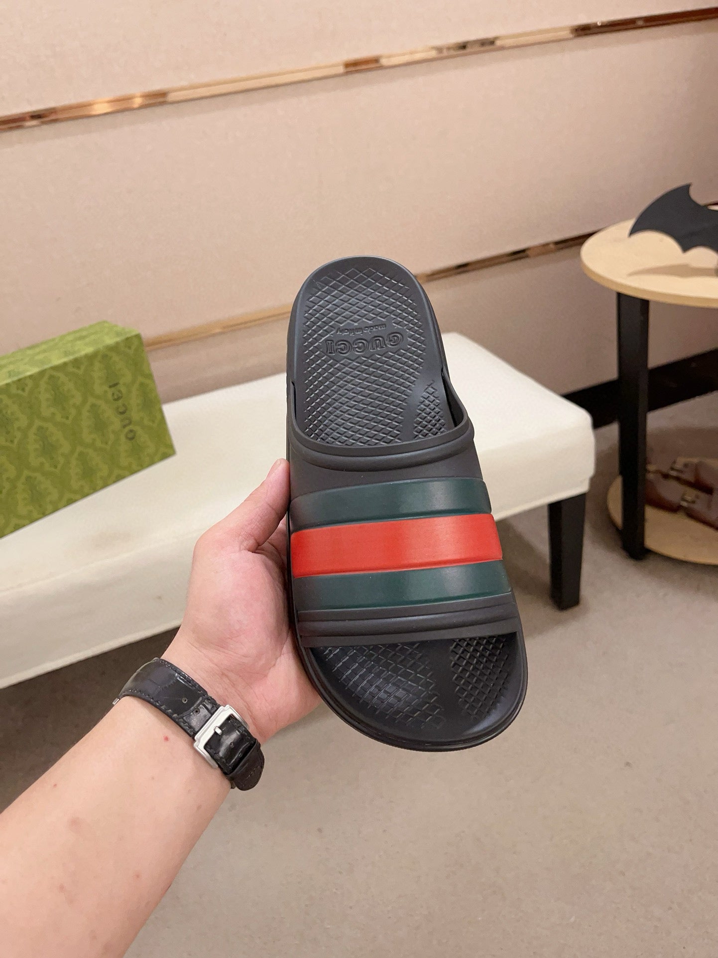 GG Men's Web Slide Black Cowhide 556160