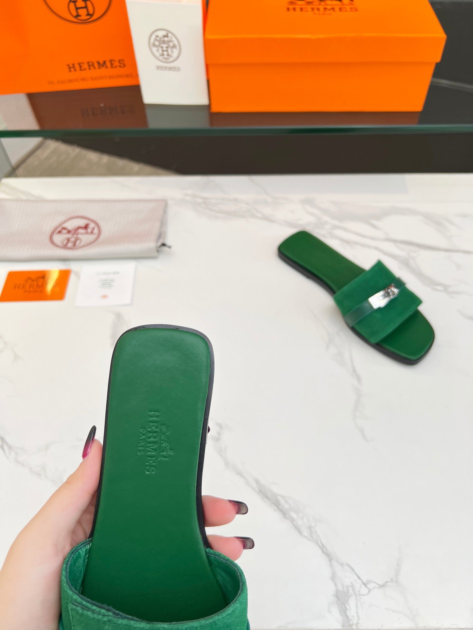 - Material: Suede, Calfskin