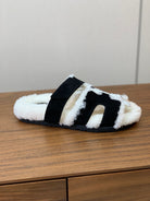 HM Chypre Sandal In Black Mix White Fleece And Suede 984199