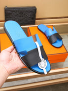 HM Men's Izmir Slide Black Blue Cowhide 685819