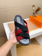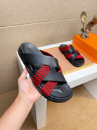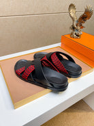 HM Men's Kazimir Sandals Black Red Calfskin 735748
