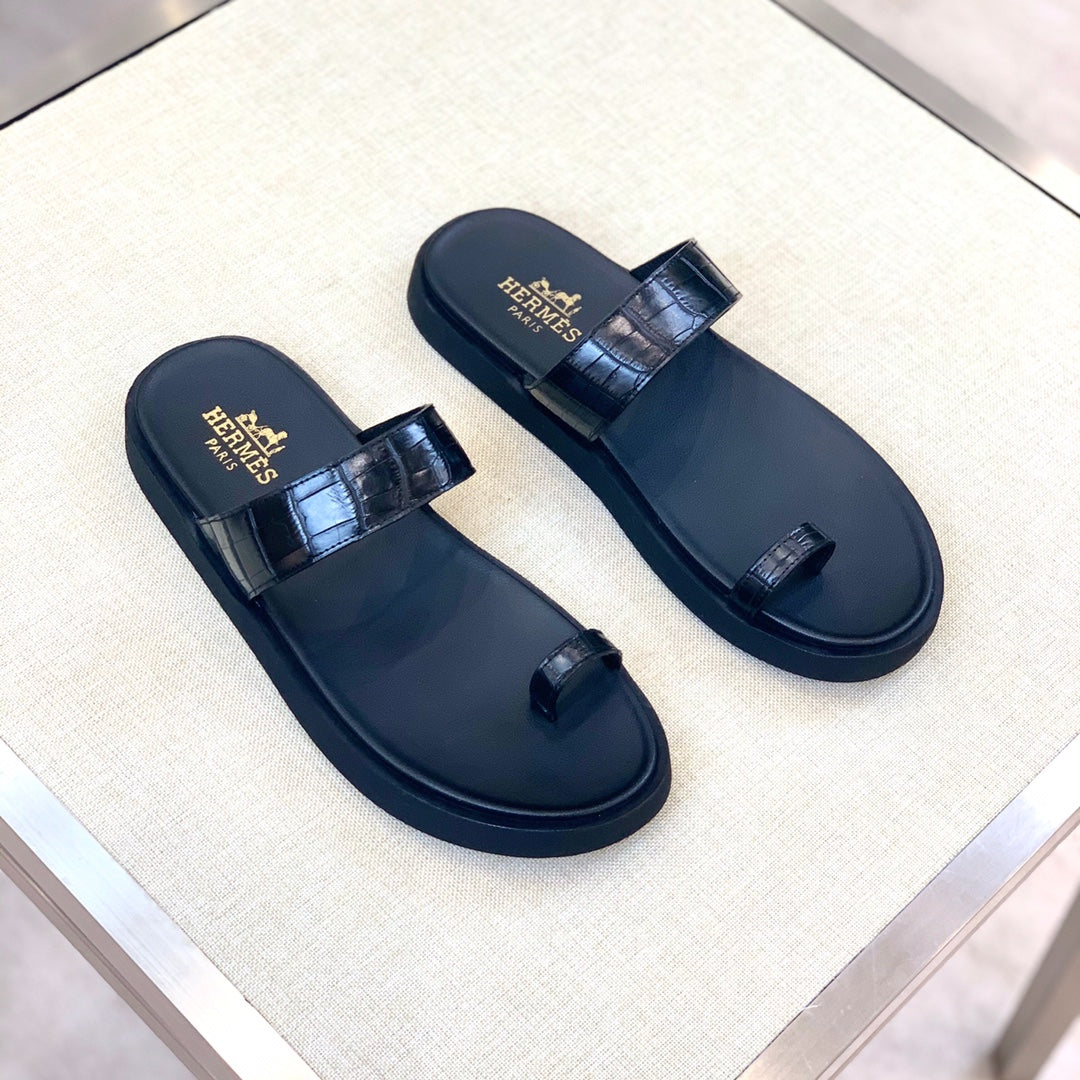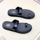 HM Men's Open-toe Sandals Black Rubber Sheepskin 561660