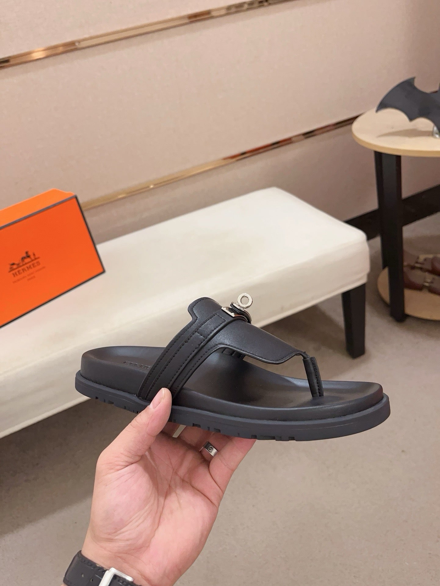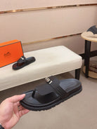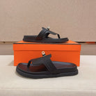 HM Men's Thong Sandals Black Cowhide 564392