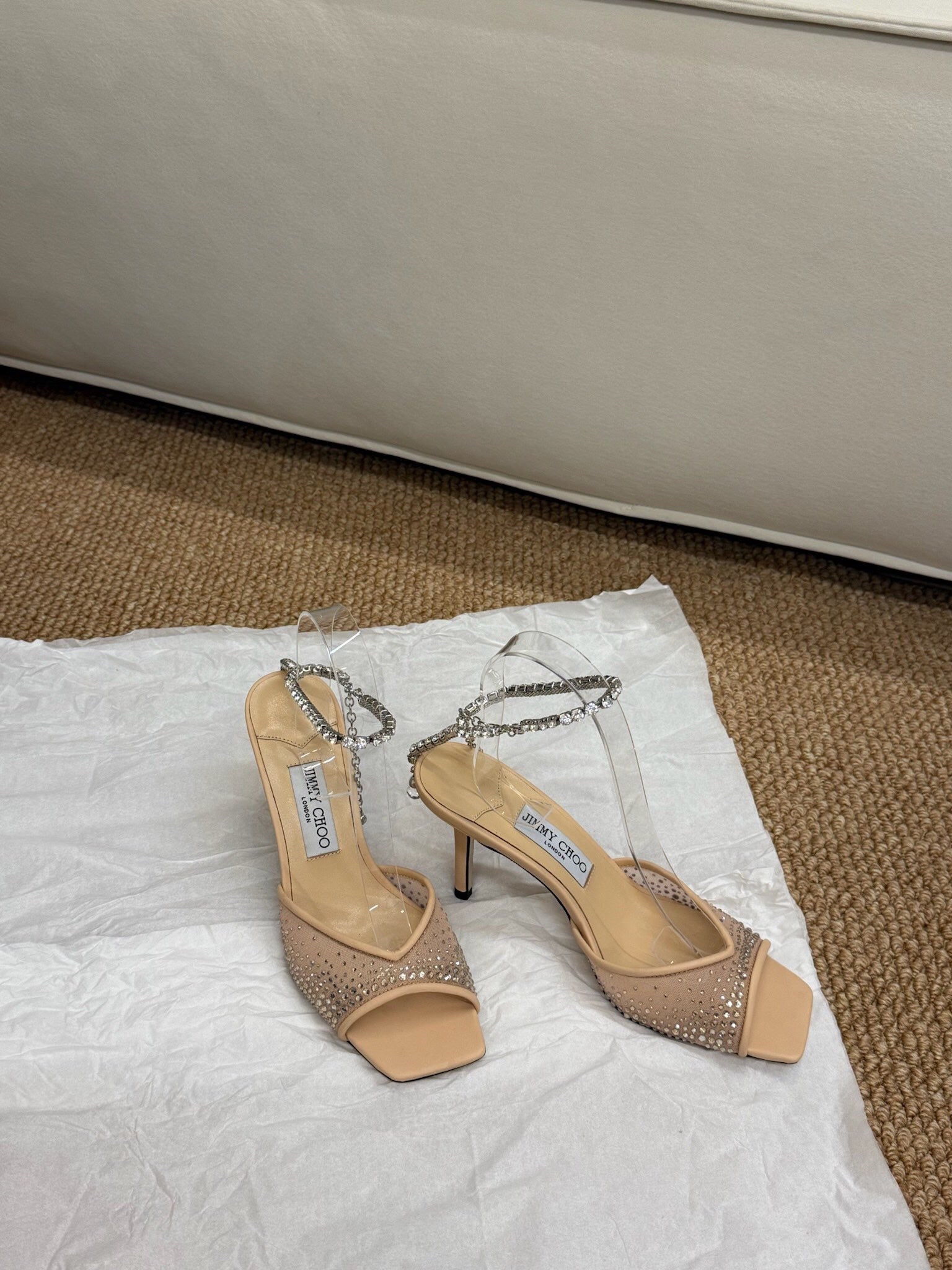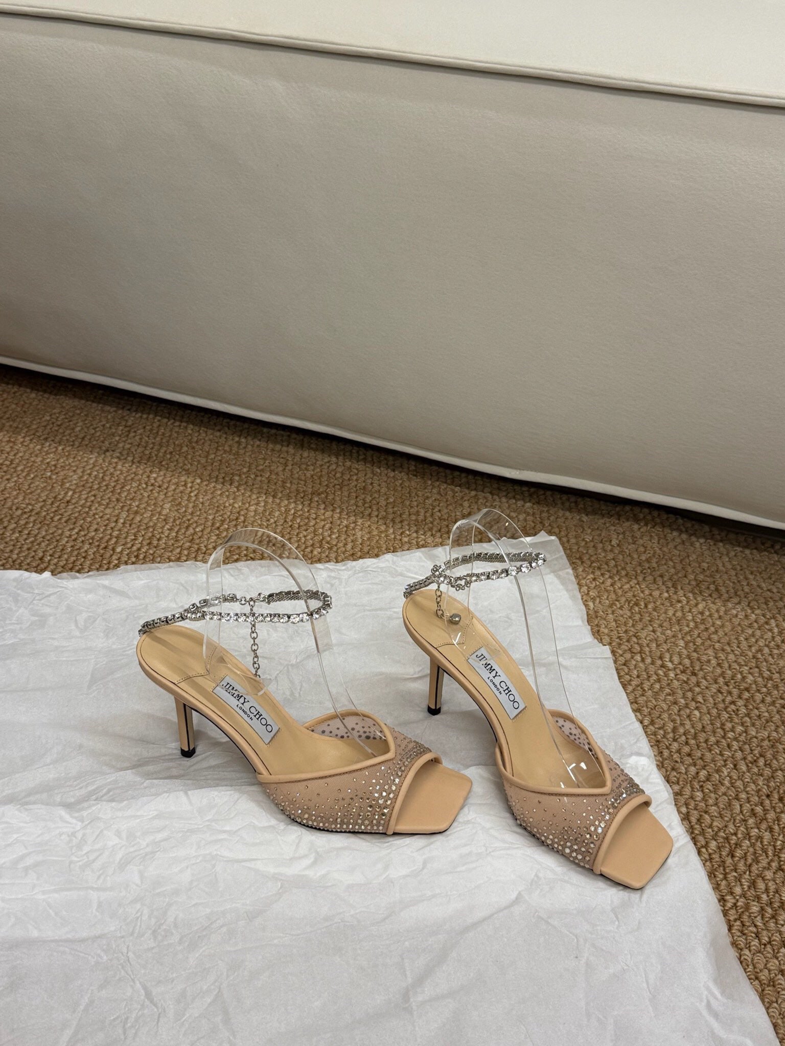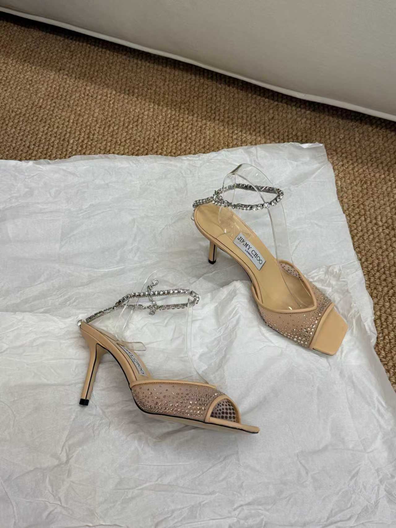 Jimmy Choo Saeda 100 Sandals Beige Leather