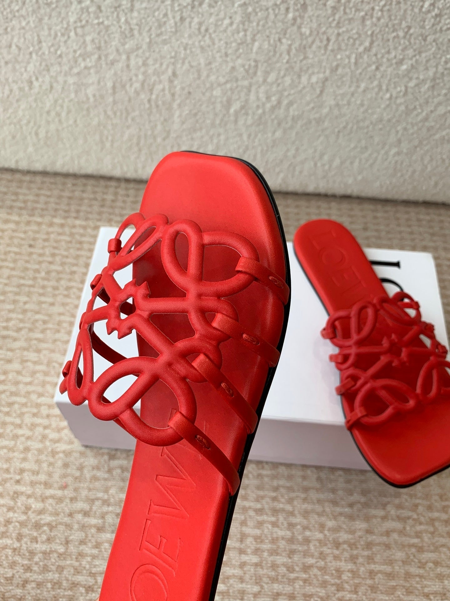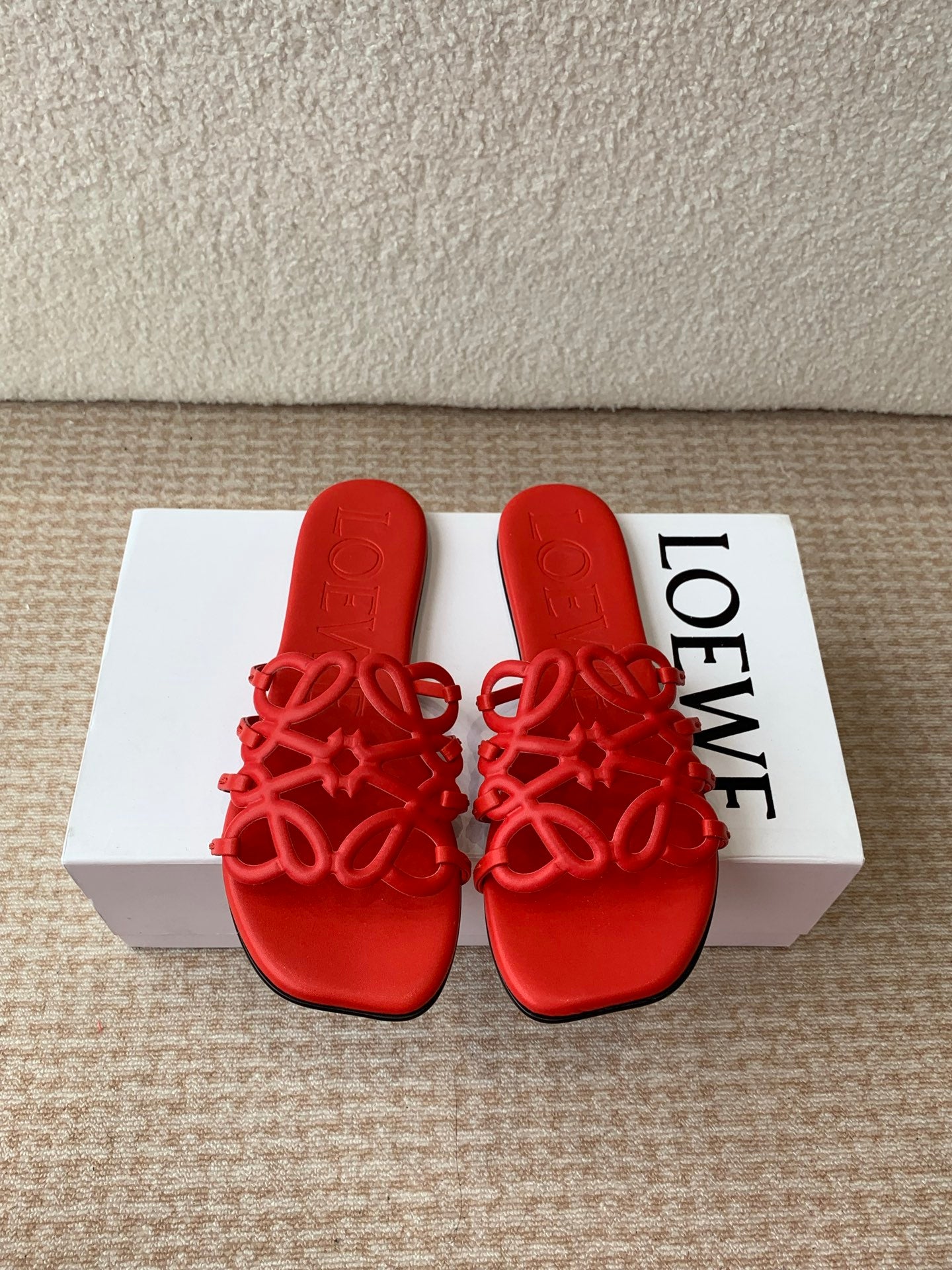 Loewe 25 Petal Anagram Slides Red Cowhide