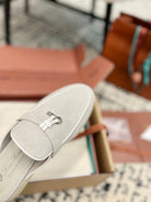 Loro Piana Grey White Suede Charms Walk Flat Mules
