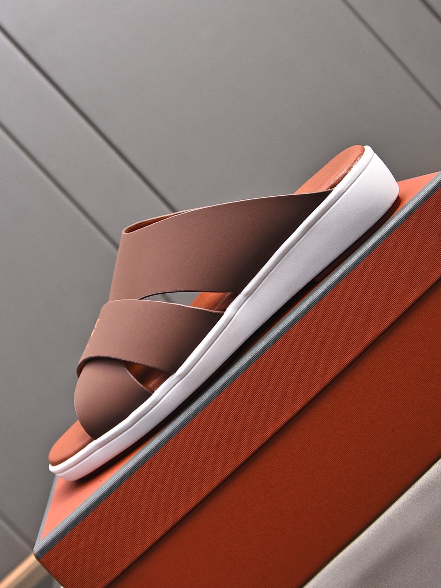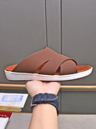 LP INTERWOVEN STRAPS SLIPPERS CHOCOLATE CALFSKIN