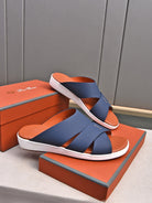 LP INTERWOVEN STRAPS SLIPPERS NAVY CALFSKIN