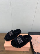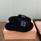 Miu Slippers Black With Brown Text Pure Wool