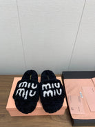 Miu slippers Black With White Text Pure Wool