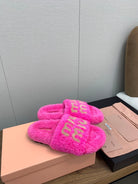 Miu slippers Pink With Light Brown Lettering Pure Wool