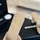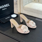 mule sandal flower high heel 80 beige suede