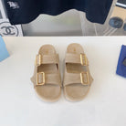 PRA STRAP SLIDES SANDALS BEIGE SUEDE