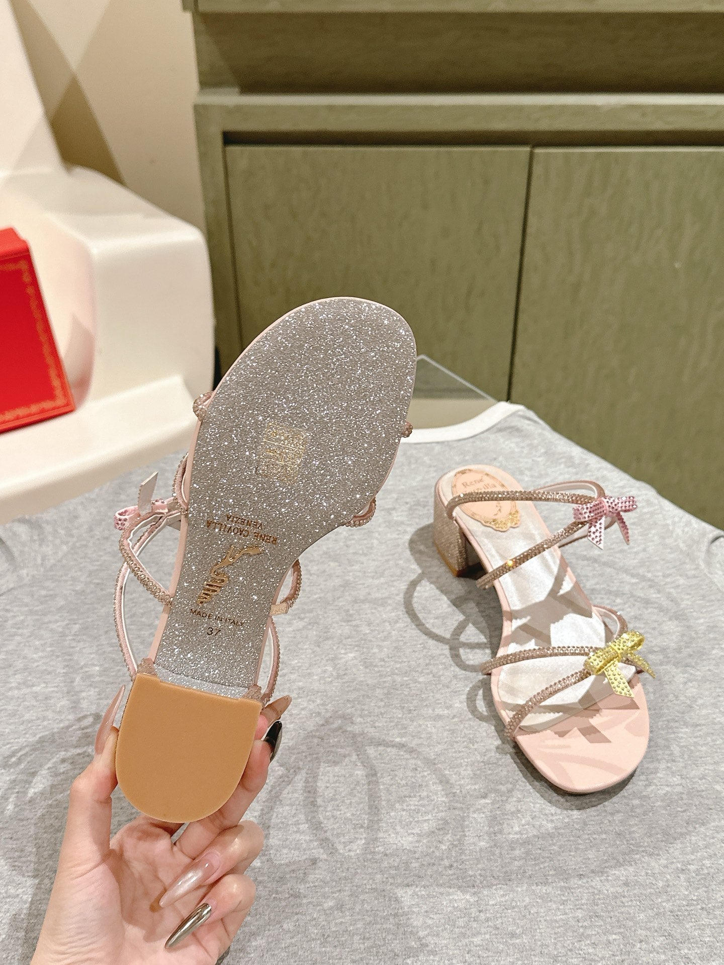 RC 25 Add Bow Diamond Sandals 4.5cm Pink Silk Rhinestones 268073