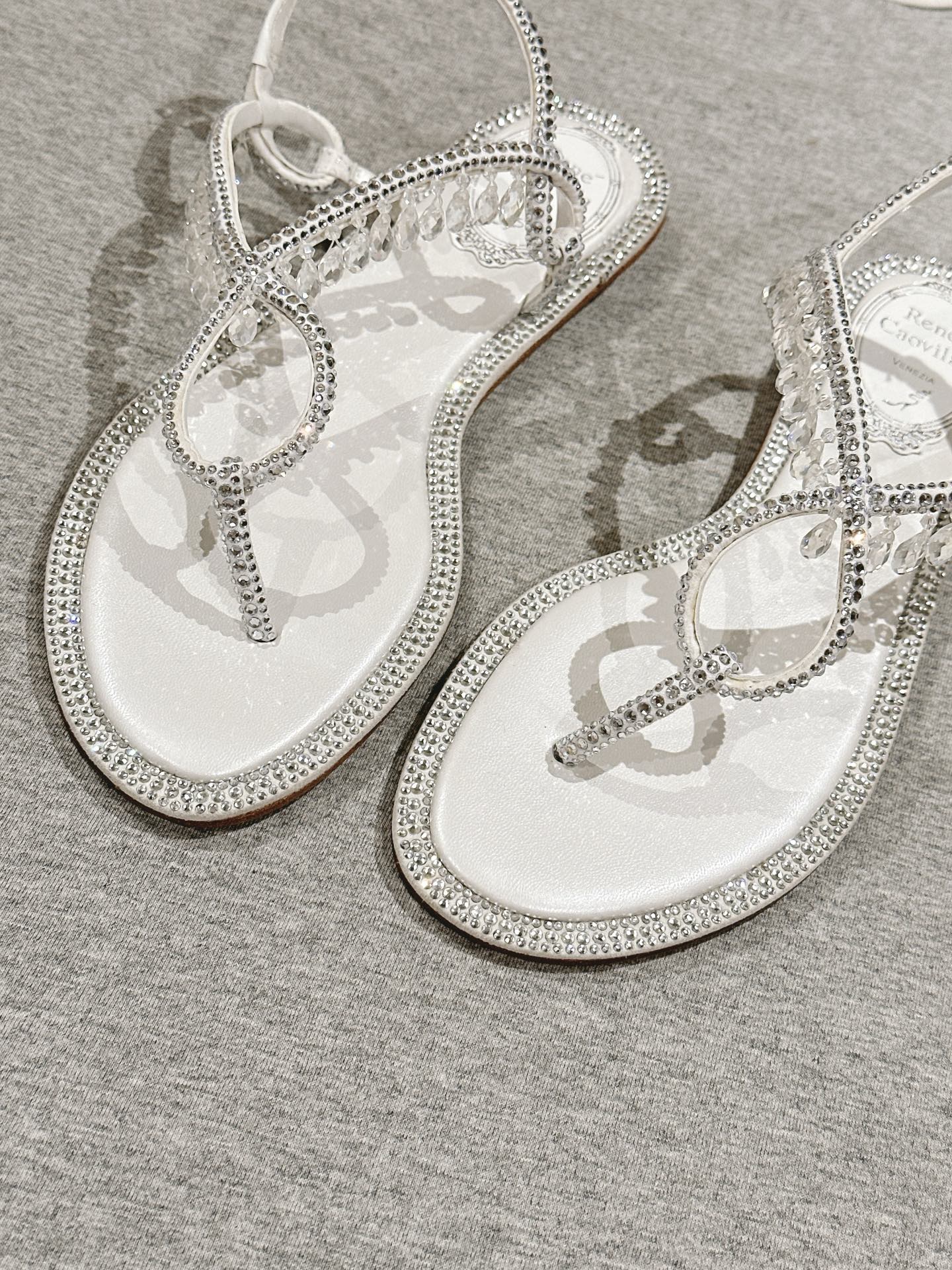 RC 25 Thong Diamond Flat Sole White Silk Rhinestones 268068