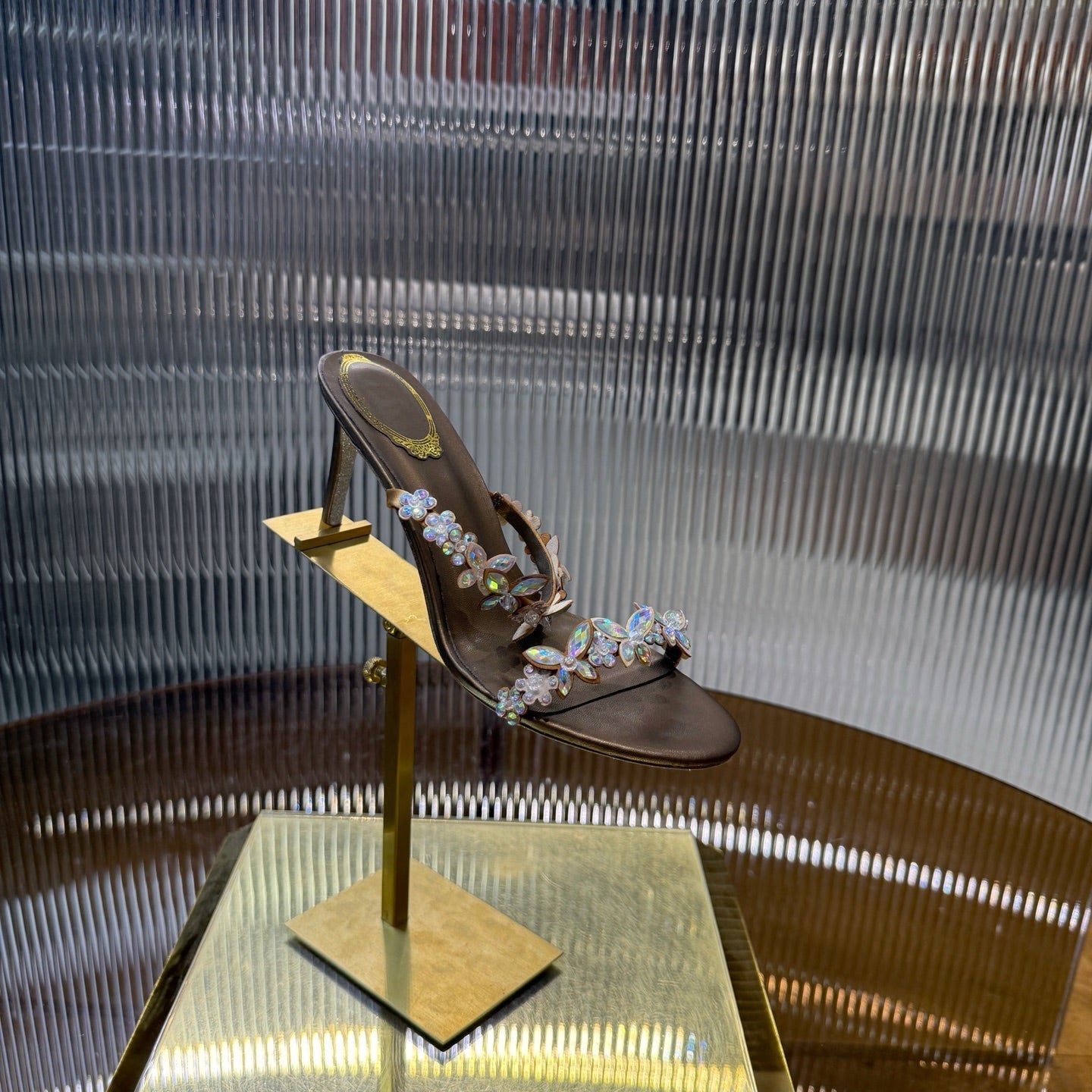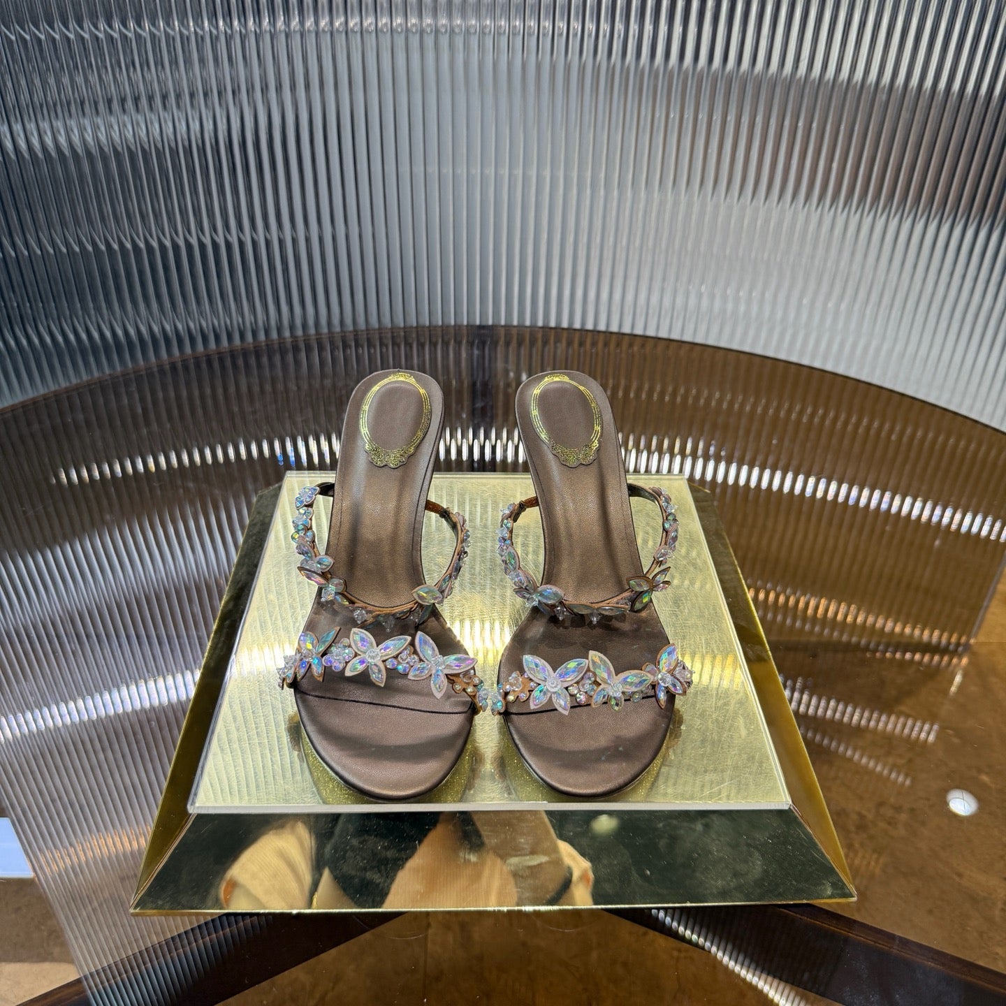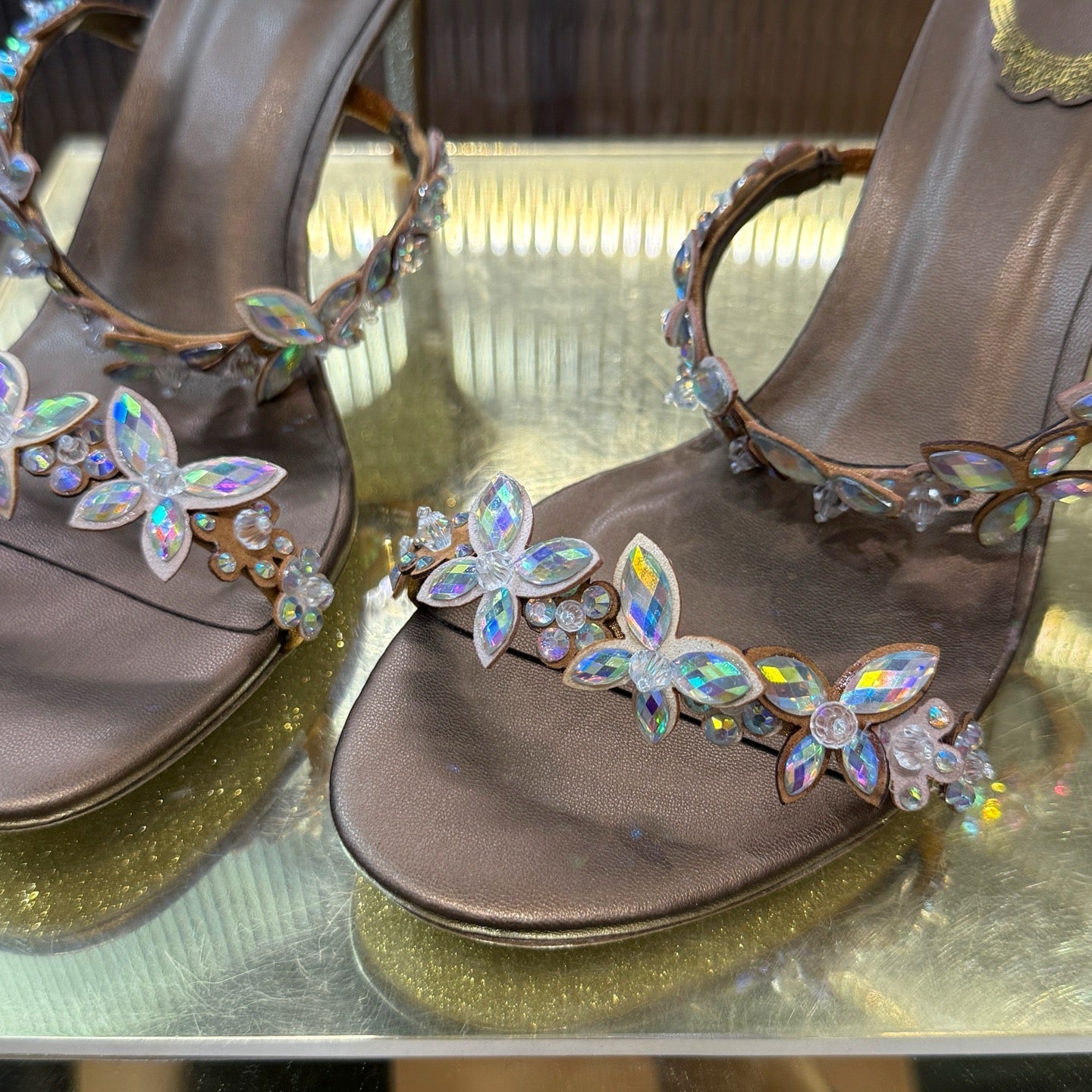 RC 25C Butterfly Flower Slippers Brown Sheepskin Rhinestones 310658