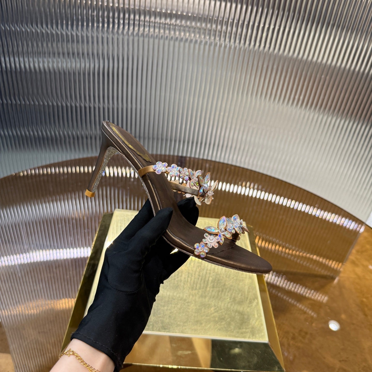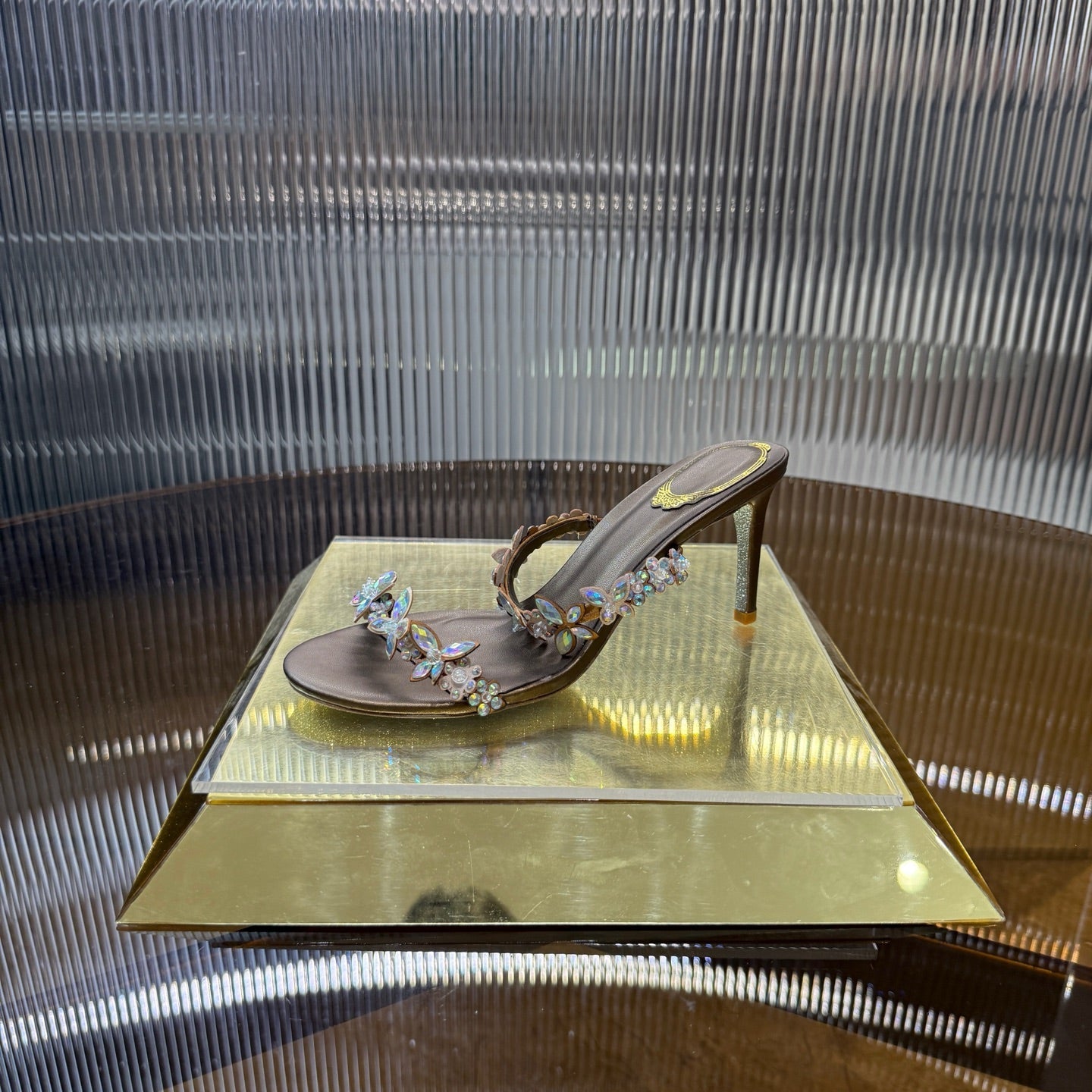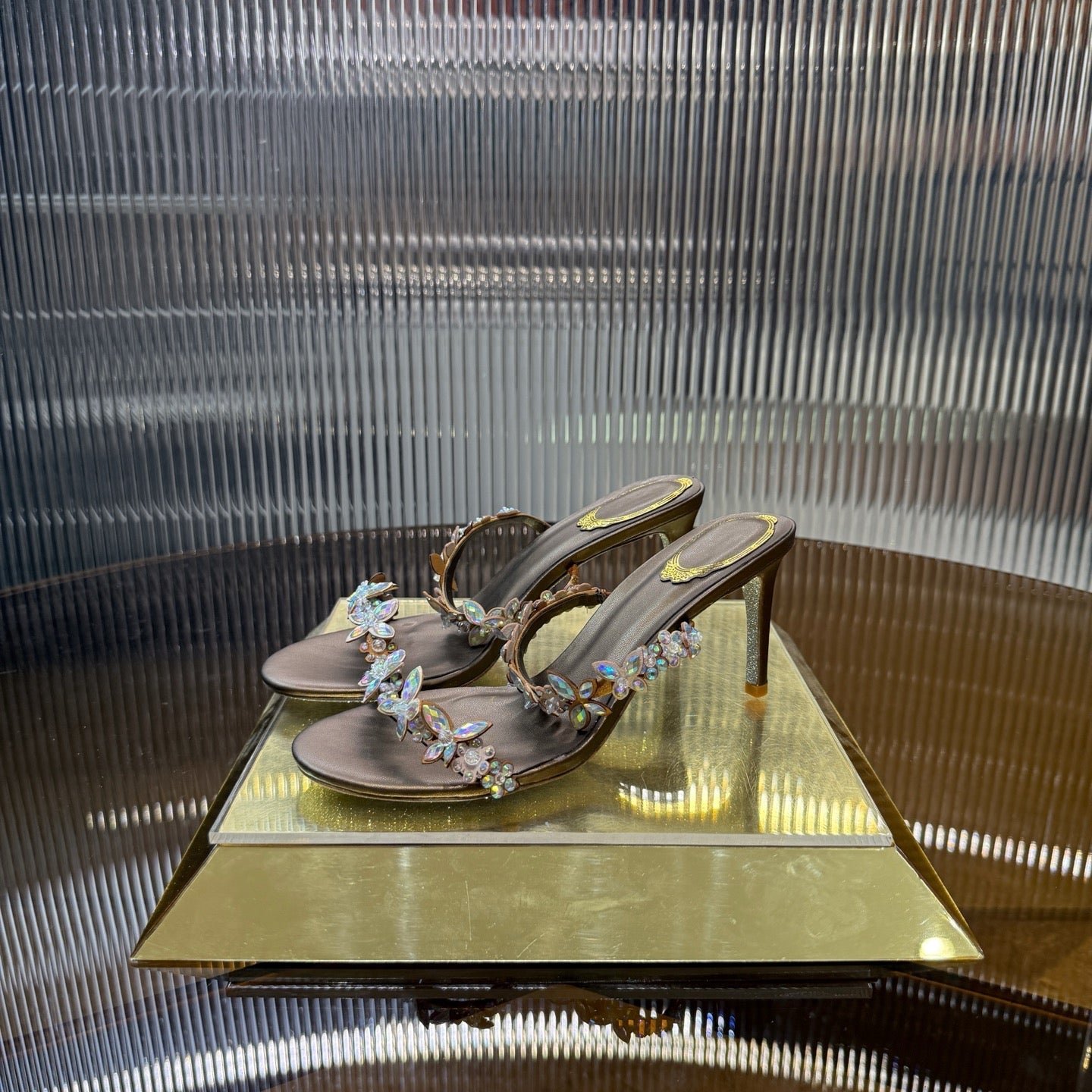 RC 25C Butterfly Flower Slippers Brown Sheepskin Rhinestones 310658