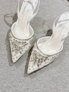 RC 25C Slingback Crystal High Heel 7.5cm White Silk Rhinestones 268080