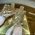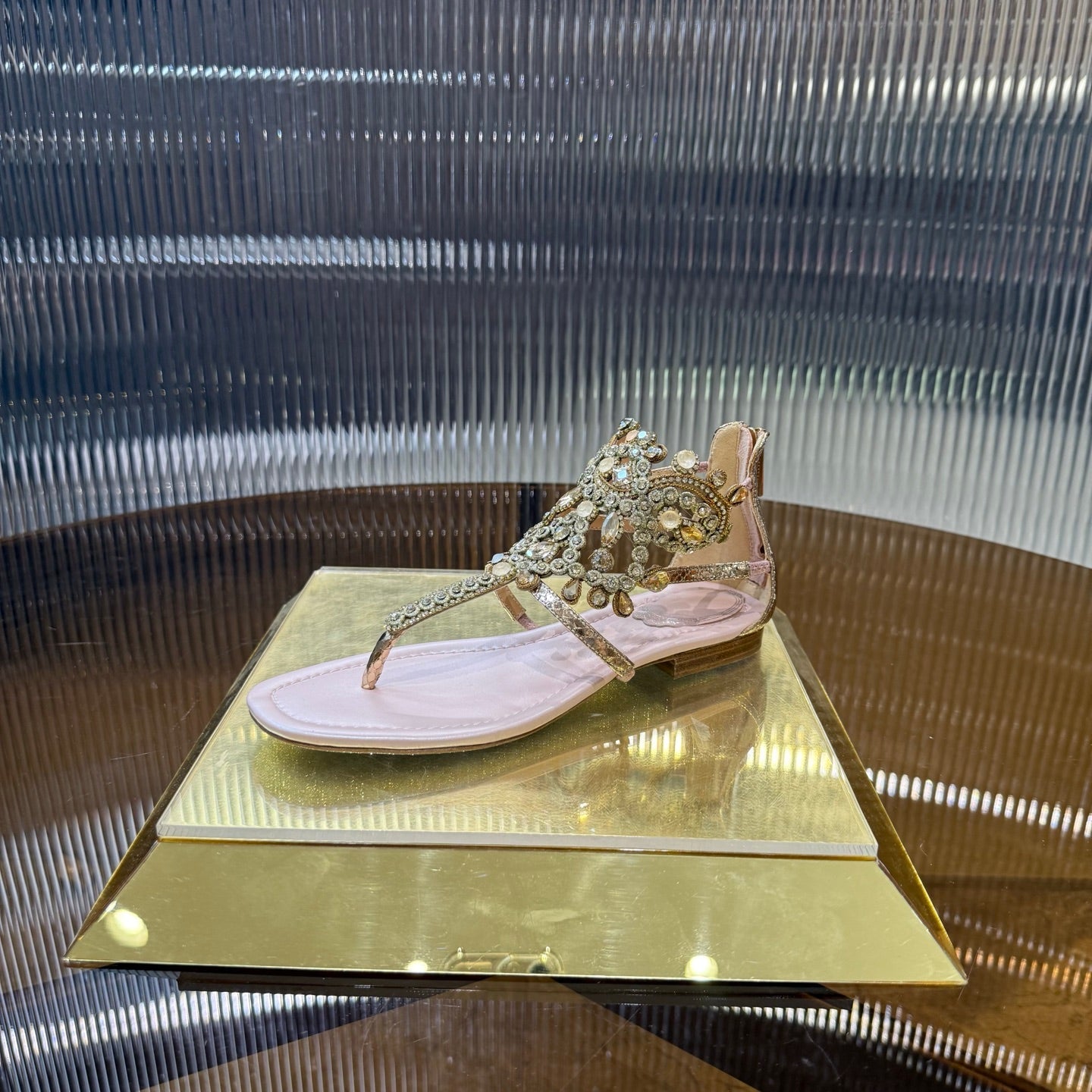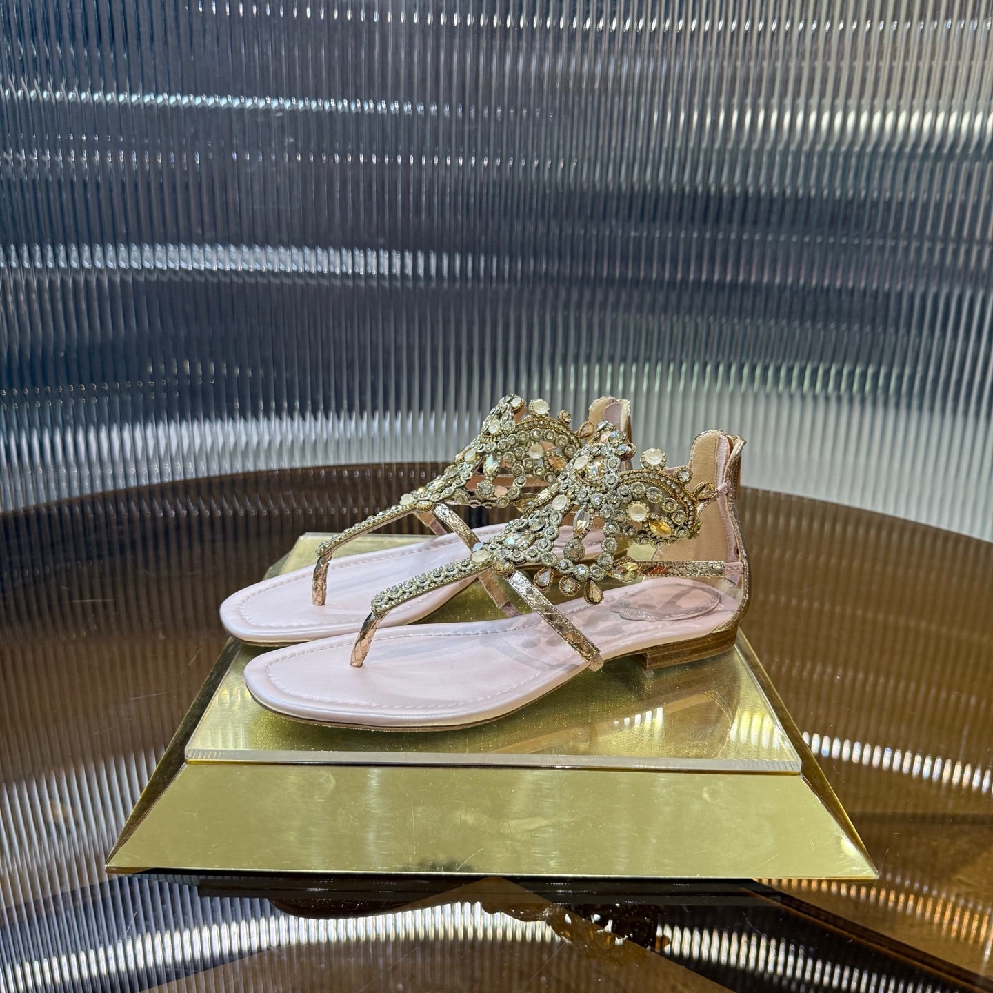 RC 25C Thong Diamond Sandals Pink Gold Sheepskin Rhinestone 339505