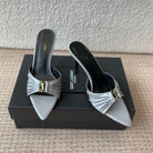 SL Babylone Sandal Heeled 10cm Grey Patent Calfskin