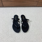 SL CRYSTAL BUCKLE THONG SANDAL BLACK SATIN