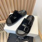 TWIN-STRAP SANDALS WITH SUEDE UPPERS AND BUCKLE CLOSURE BLACK