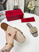 Vlogo embellished leather-trimmed raffia slides grey