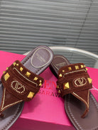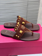 VT Rockstud Thong Sandals Brown Suede