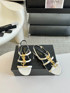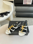 Yves SL Buckle Women Sandals Black White Leather