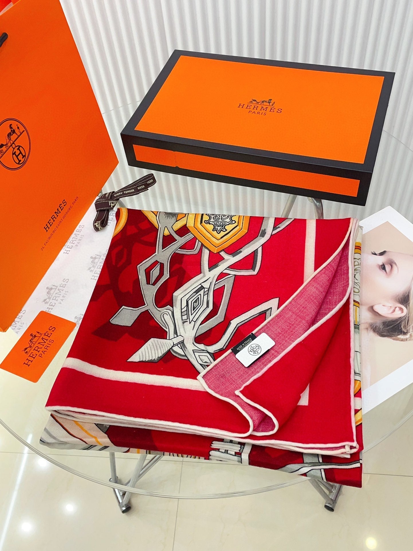 Brides Et Destin Scarf 140 CM In Red Colorful Cashmere Silk 375372