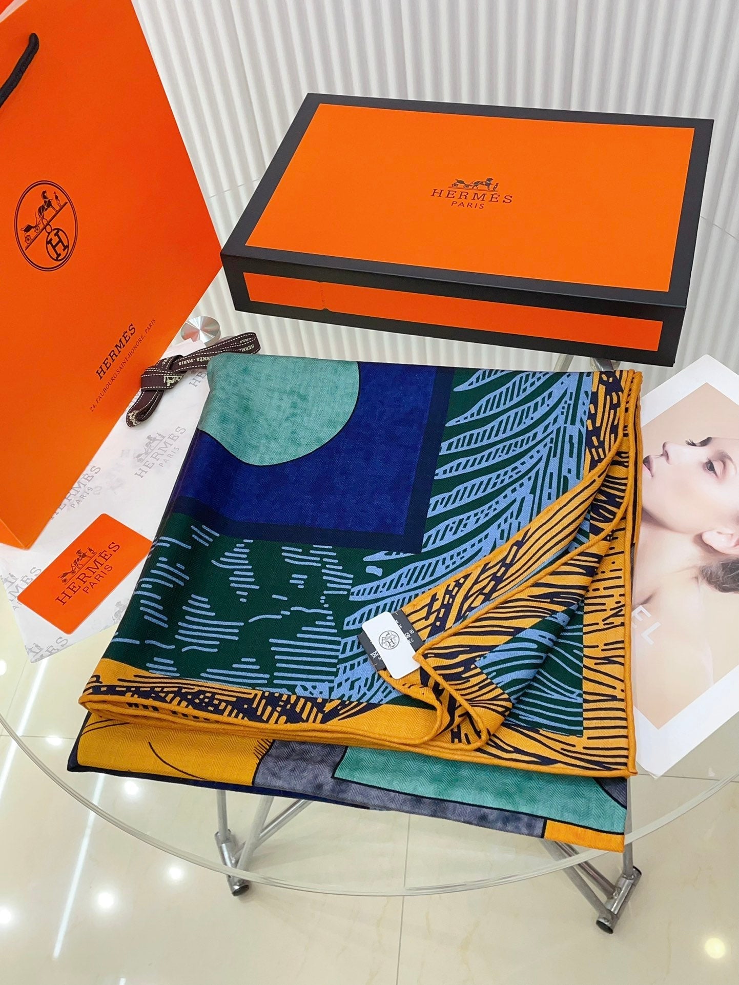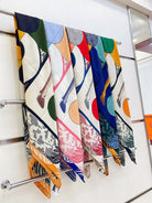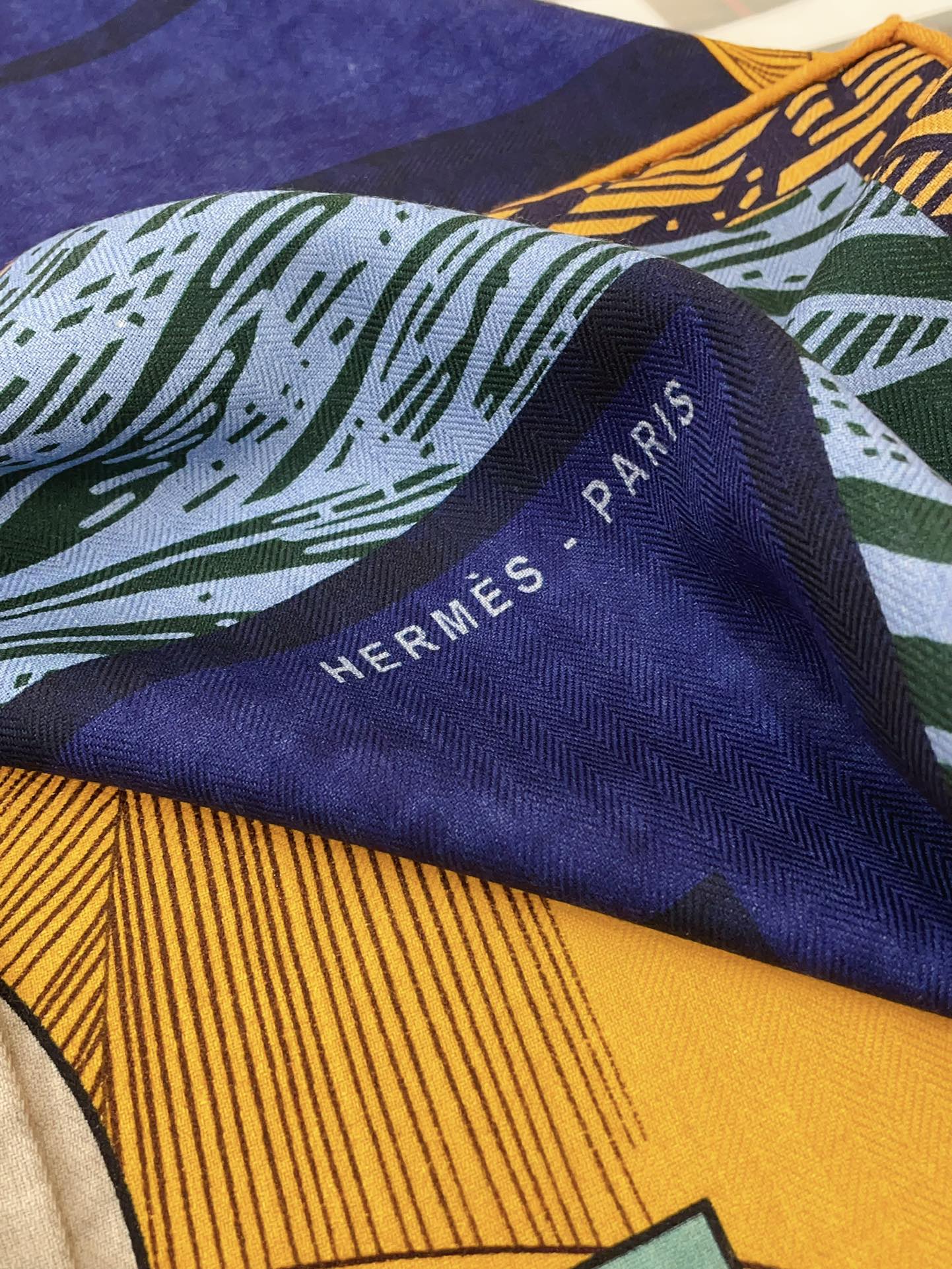 Cavalier en Formes shawl 140 CM In Dark Blue Colorful Cashmere And Silk 331715
