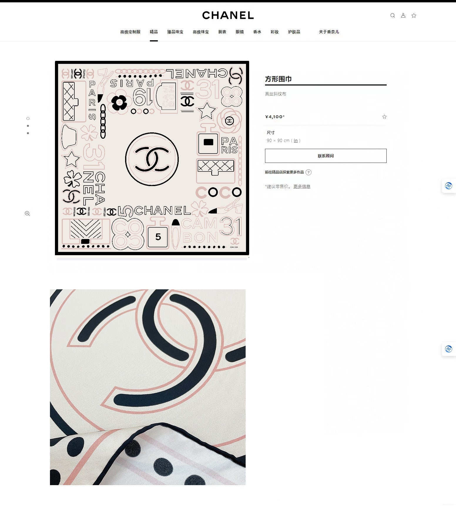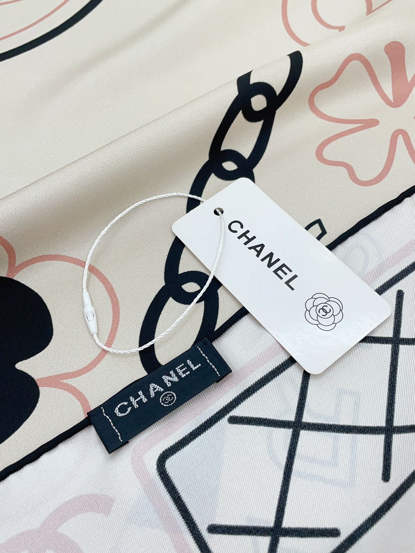 CC Square Scarf 90 CM In White Mix Black Pink Silk Twill 165001