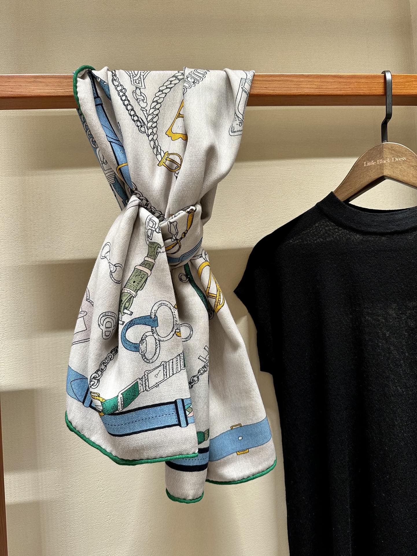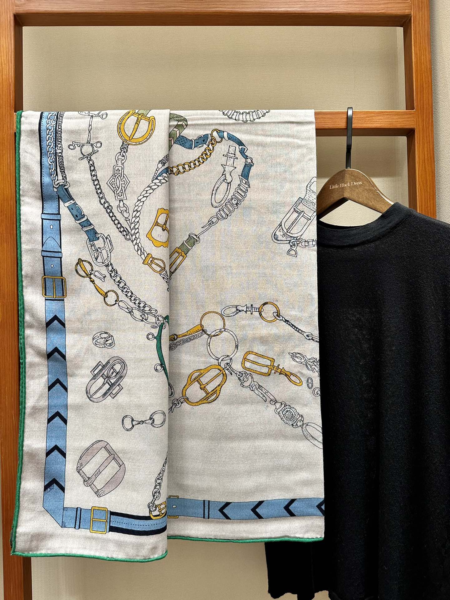 Chevaux Dechaines Shawl 135 CM IN Light Blue Colorful Cashmere Silk 373686