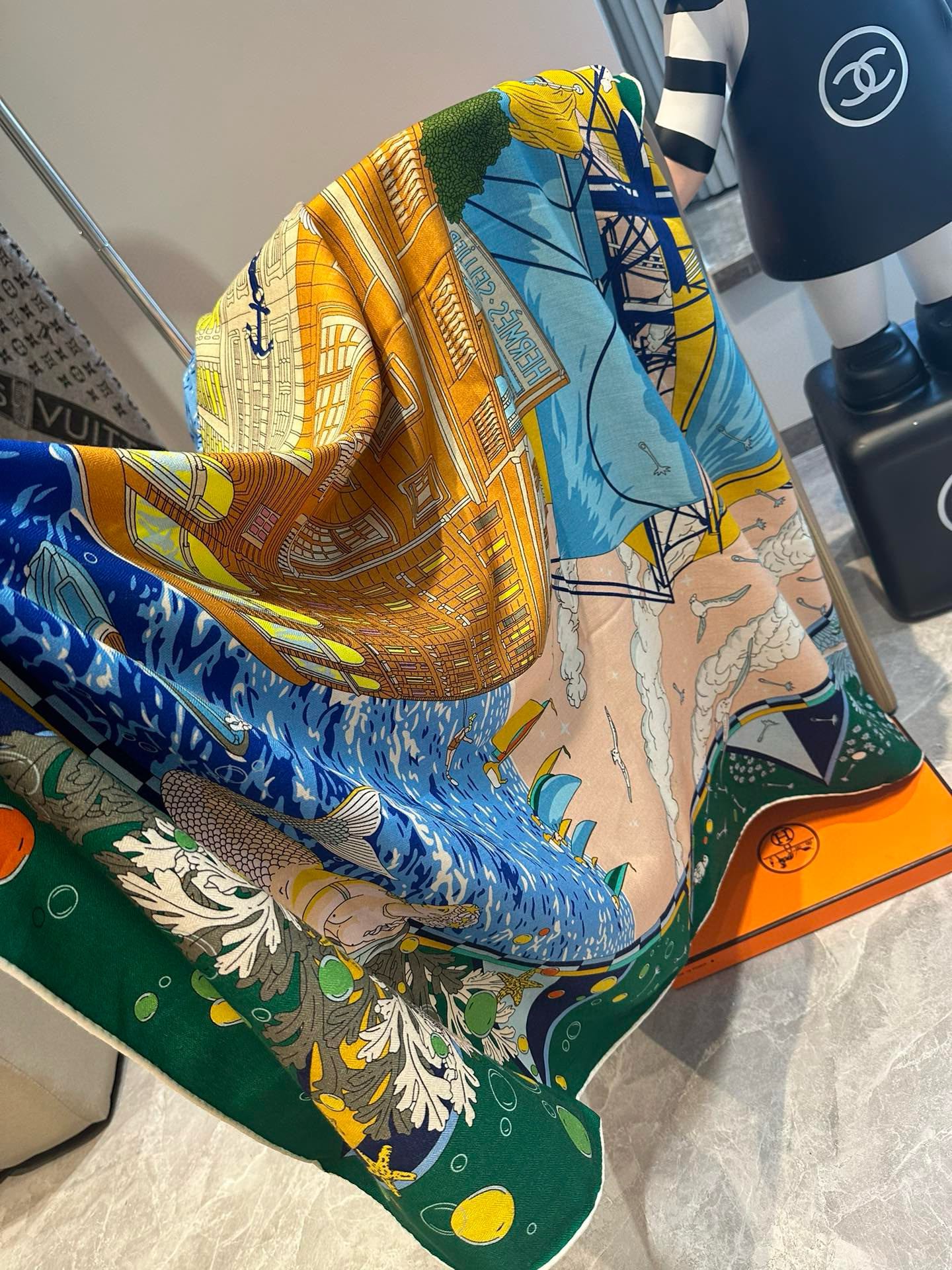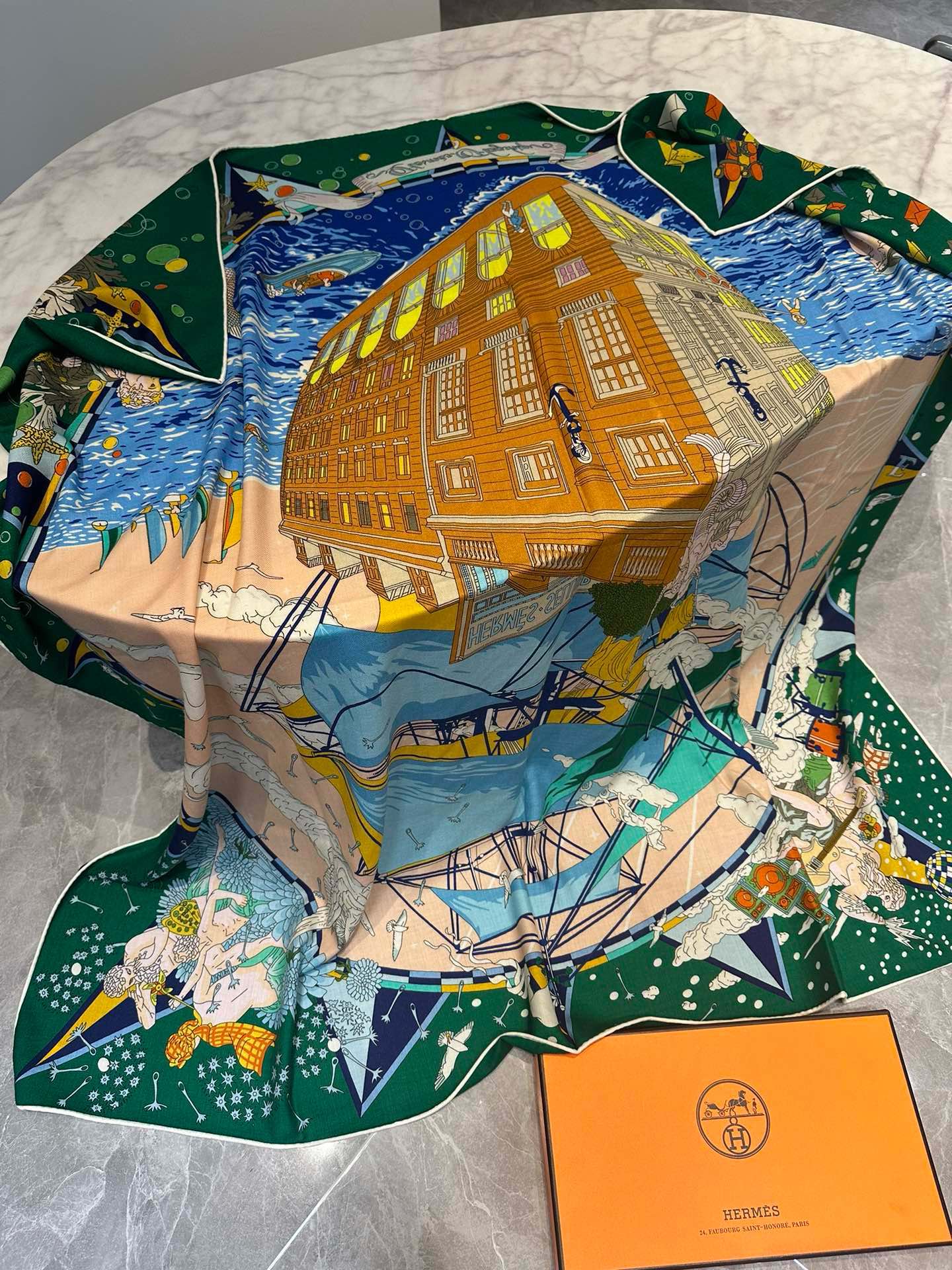 Flagship Scarf 140 CM In Dark Green Colorful Cashmere And Mulberry Silk 376506