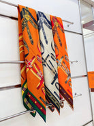 HM Lettres Equestre Scarf 140 CM In Orange Brown Colorful Cashmere And Silk 359400