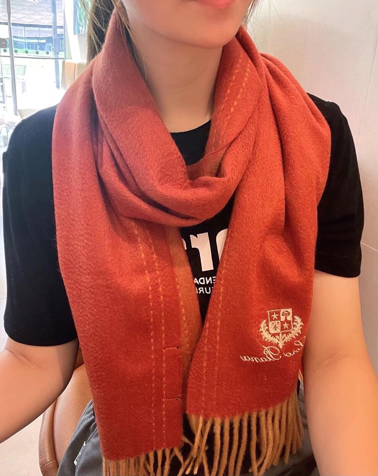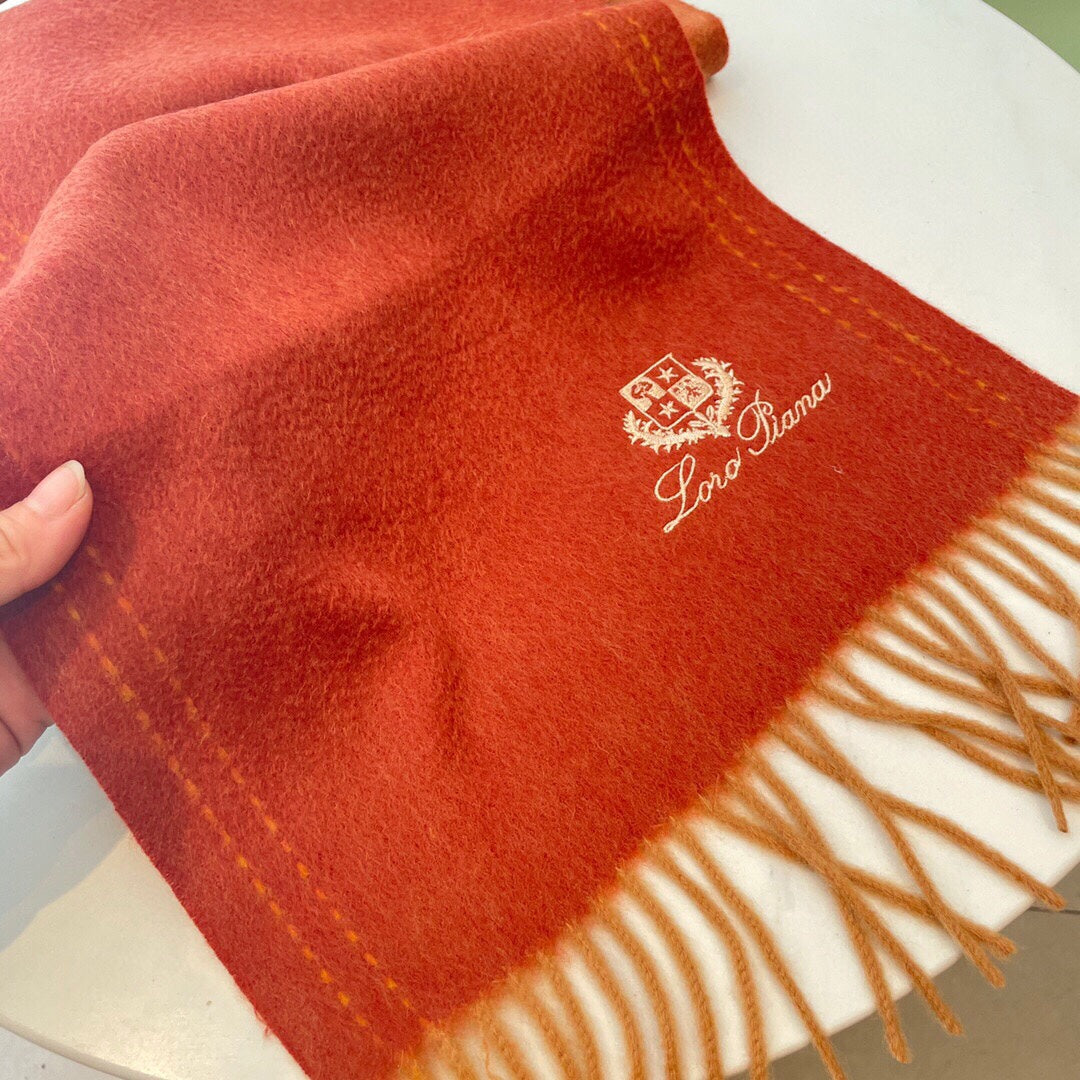 LP Grande Unita Scarf 200 CM In Red Orange Cashmere 705047