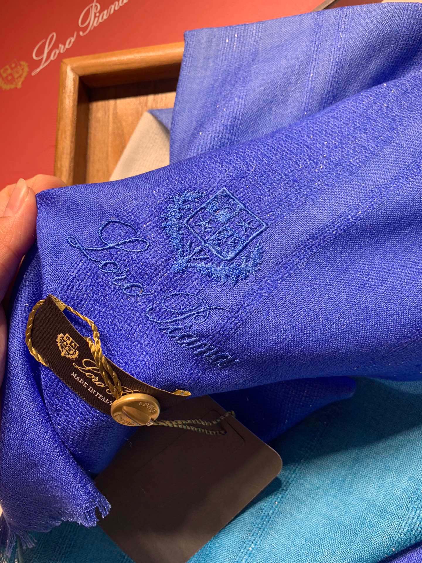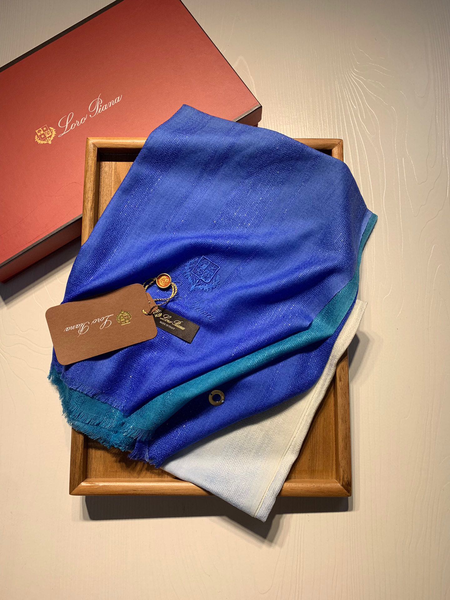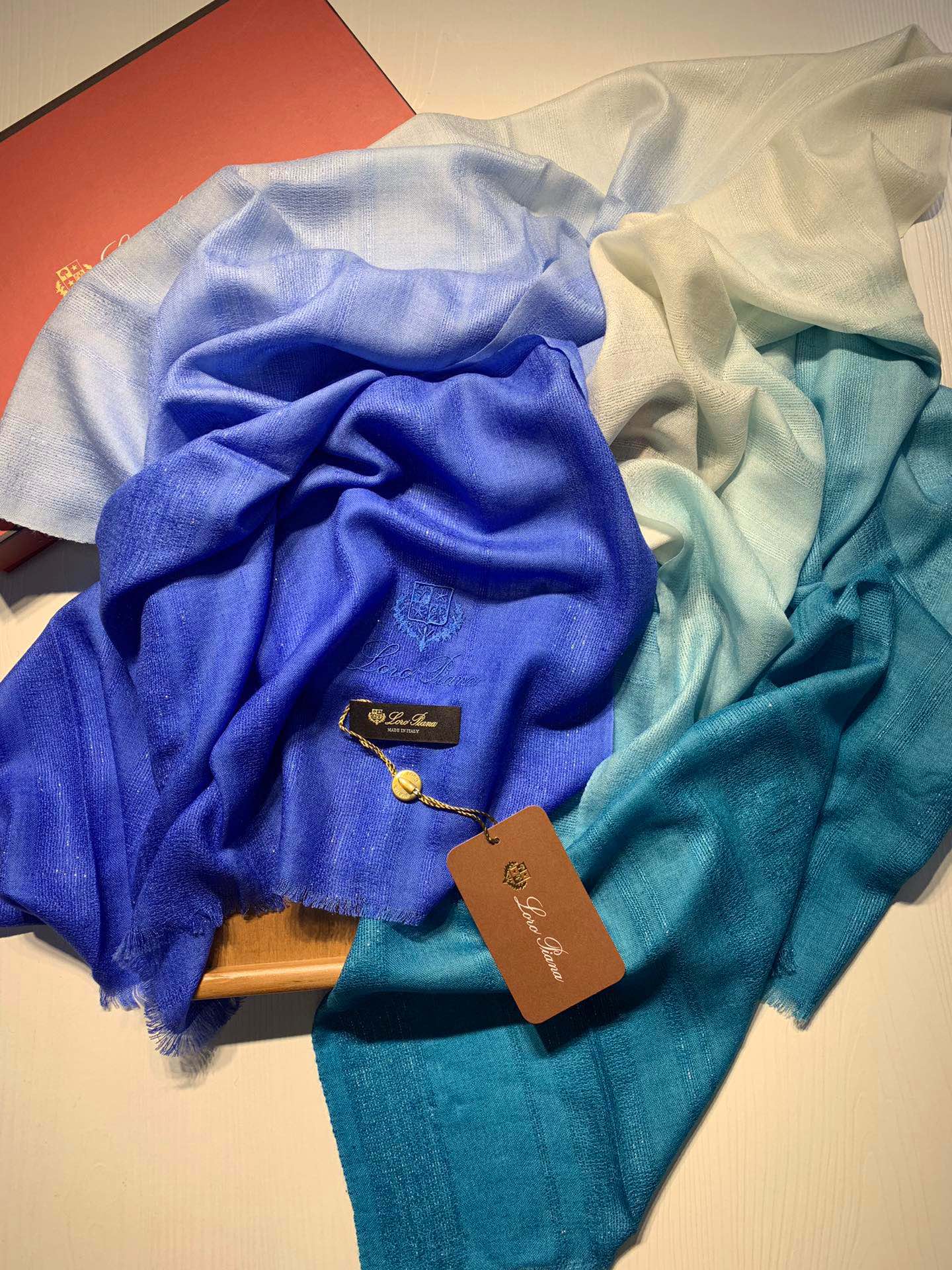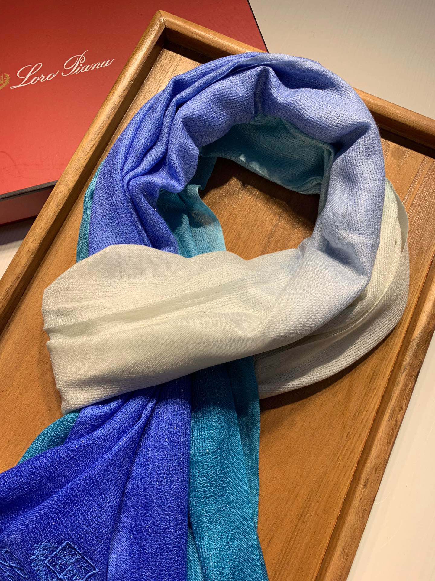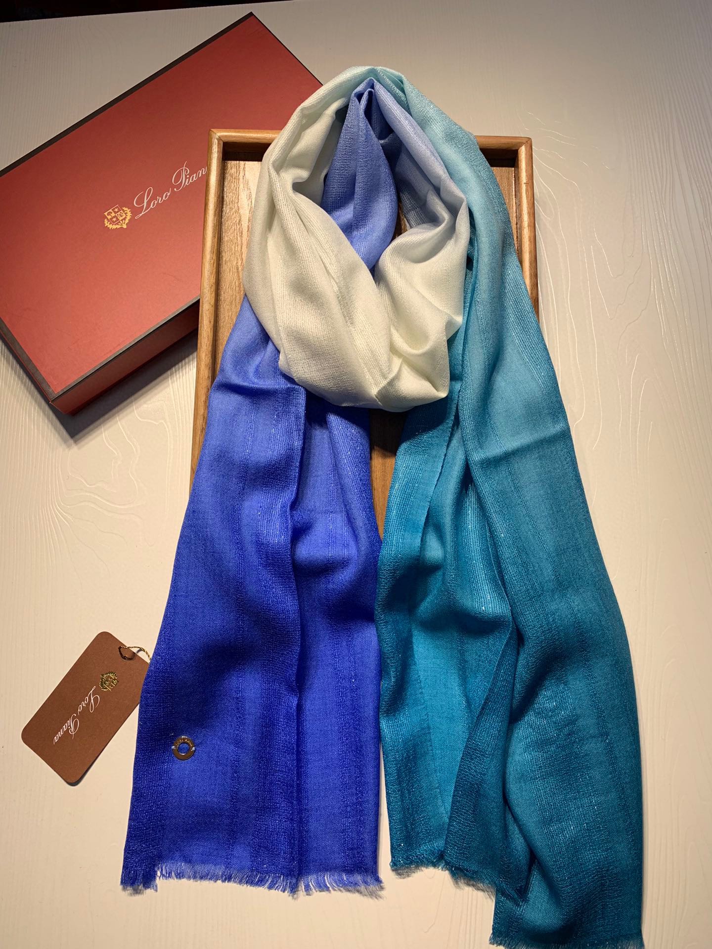 LP Scarf 190 CM In Blue White Gradient Dark Green Cashmere And Silk 945595