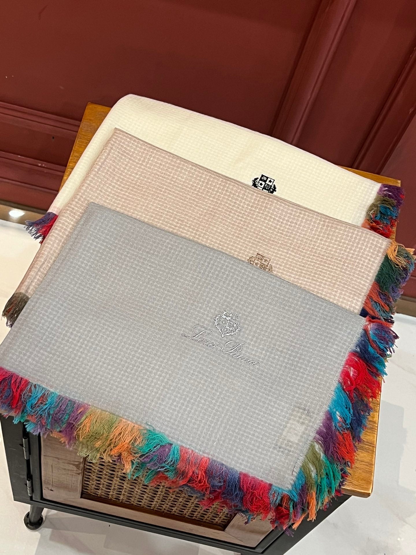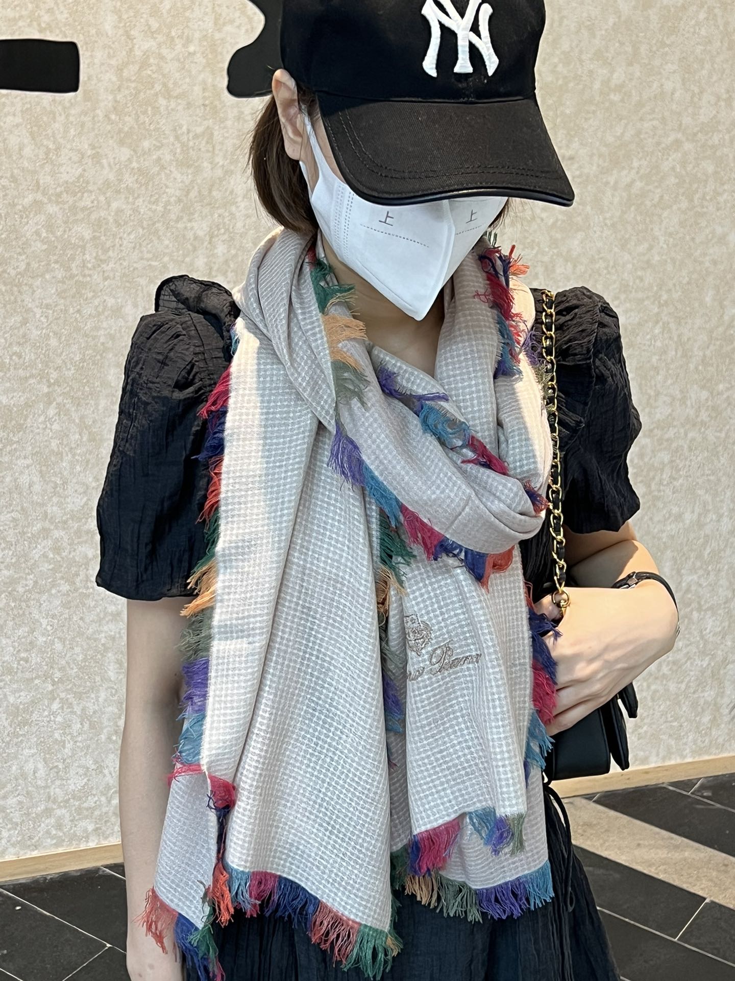 LP Scarf 190 CM In Light Beige Colorful Waffle Fabric Woven 975483