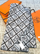 Scarf 140 CM White Black Silk
