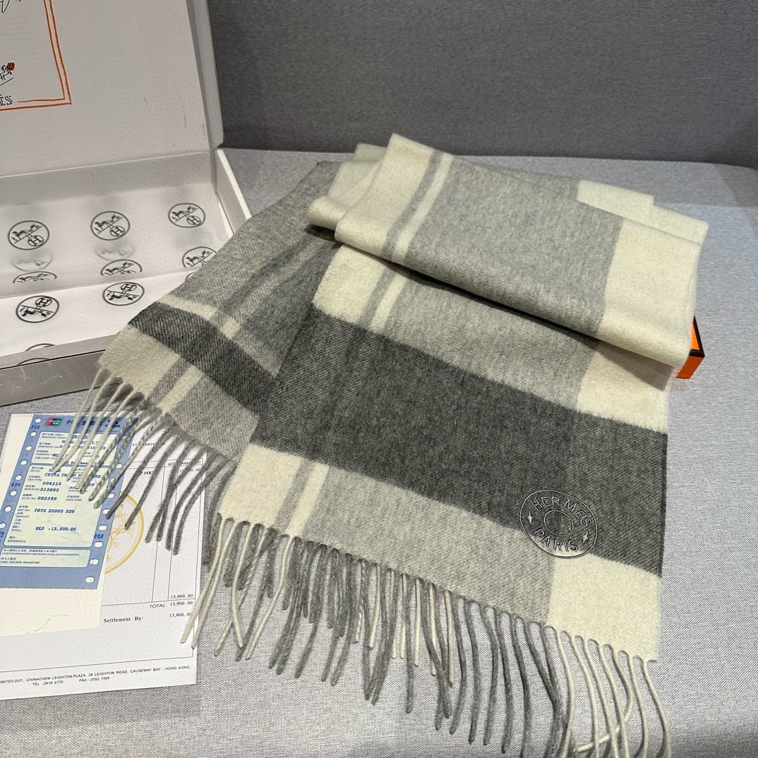 Scarf 180 CM In Grey Black Mix White Cashmere 381230