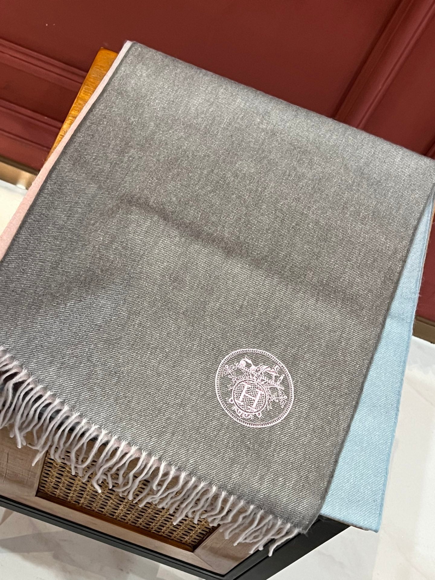 Scarf 190 CM In Grey Pink Mix Light Blue Cashmere