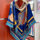 Silk Carrick a Pompe Scarf 140 CM In Dark Blue Colorful Cashmere And Silk 381156