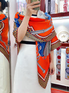 Silk Carrick a Pompe Scarf 140 CM In Orange Colorful Cashmere And Silk 381157