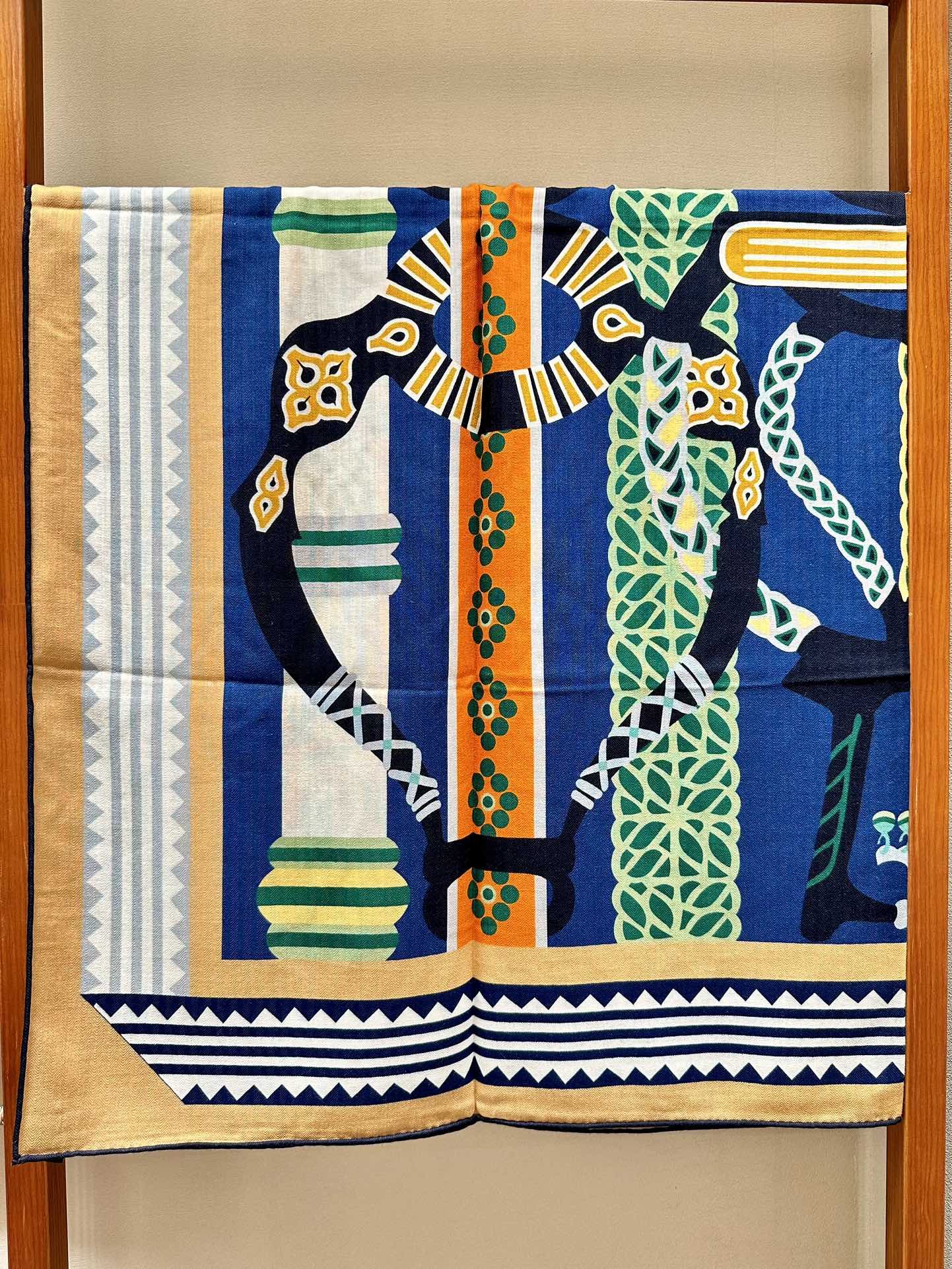 Square Scarf 140 CM Green Mix Blue Colorful Silk