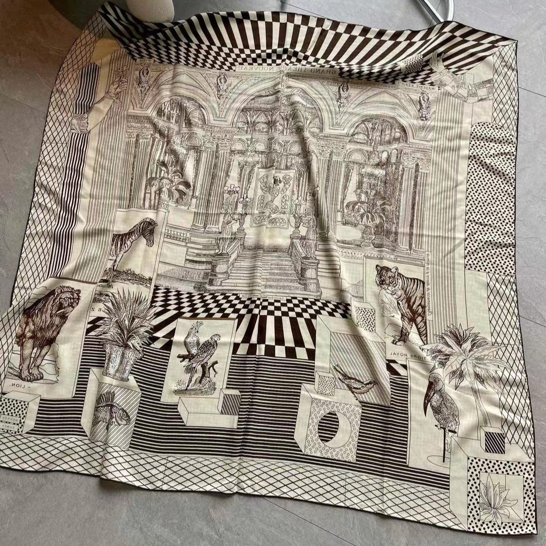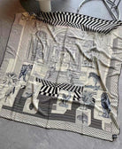 Square Scarf 140 CM In Black Mix White Silk 385353