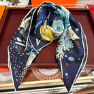 Square Scarf 90 CM Charcoal Blue Colorful Silk